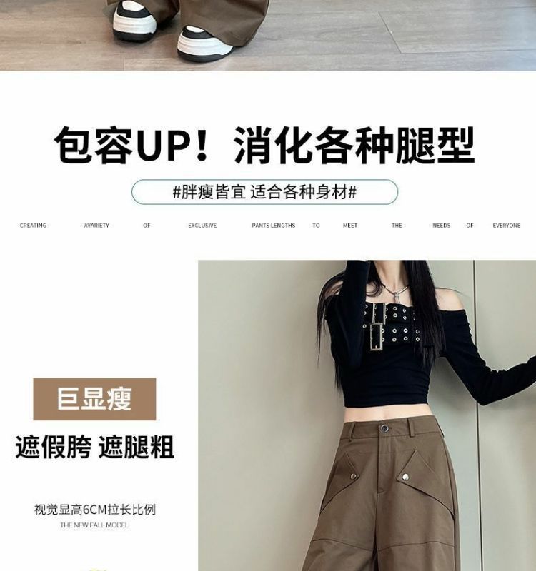 여성용 아메리칸 오버올 2025 봄 여름 신작 아웃도어 하이킹 팬츠 하이웨이스트 루즈 슬리밍 스포츠 와이드 팬츠 트렌디스토어 가기