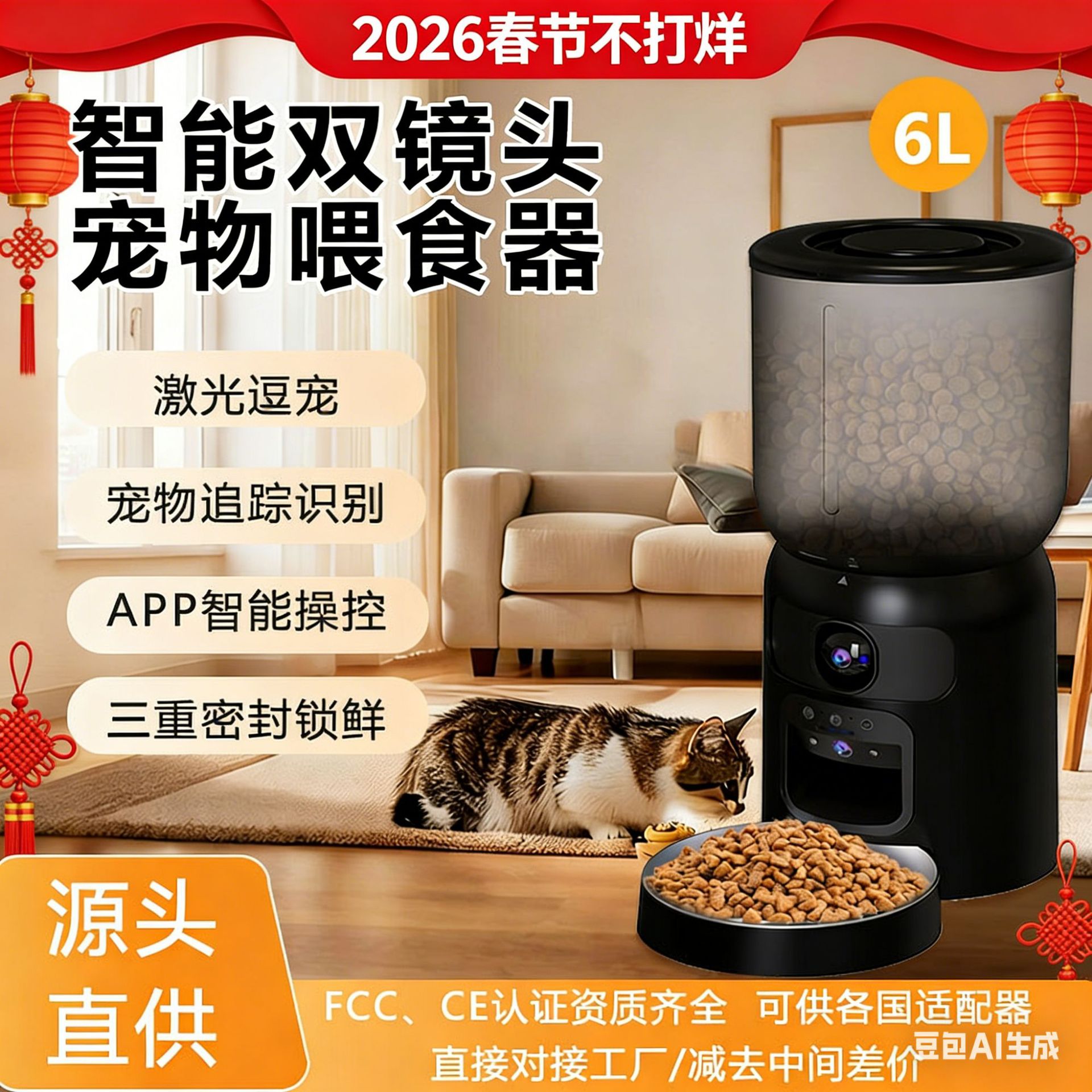 국경 간 고양이 및 개 듀얼 렌즈 애완 동물 피더 레이저 재미있는 애완 동물 녹음 가능한 지능형 모바일 감지 자동 먹이 기계