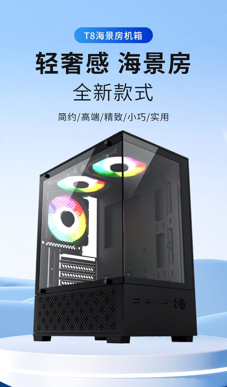 컴퓨터 케이스 T8 미니 기둥 없는 바다 전망 룸 케이스 matx 마더보드 atx 전원 공급 장치 홈 오피스 메인 케이스