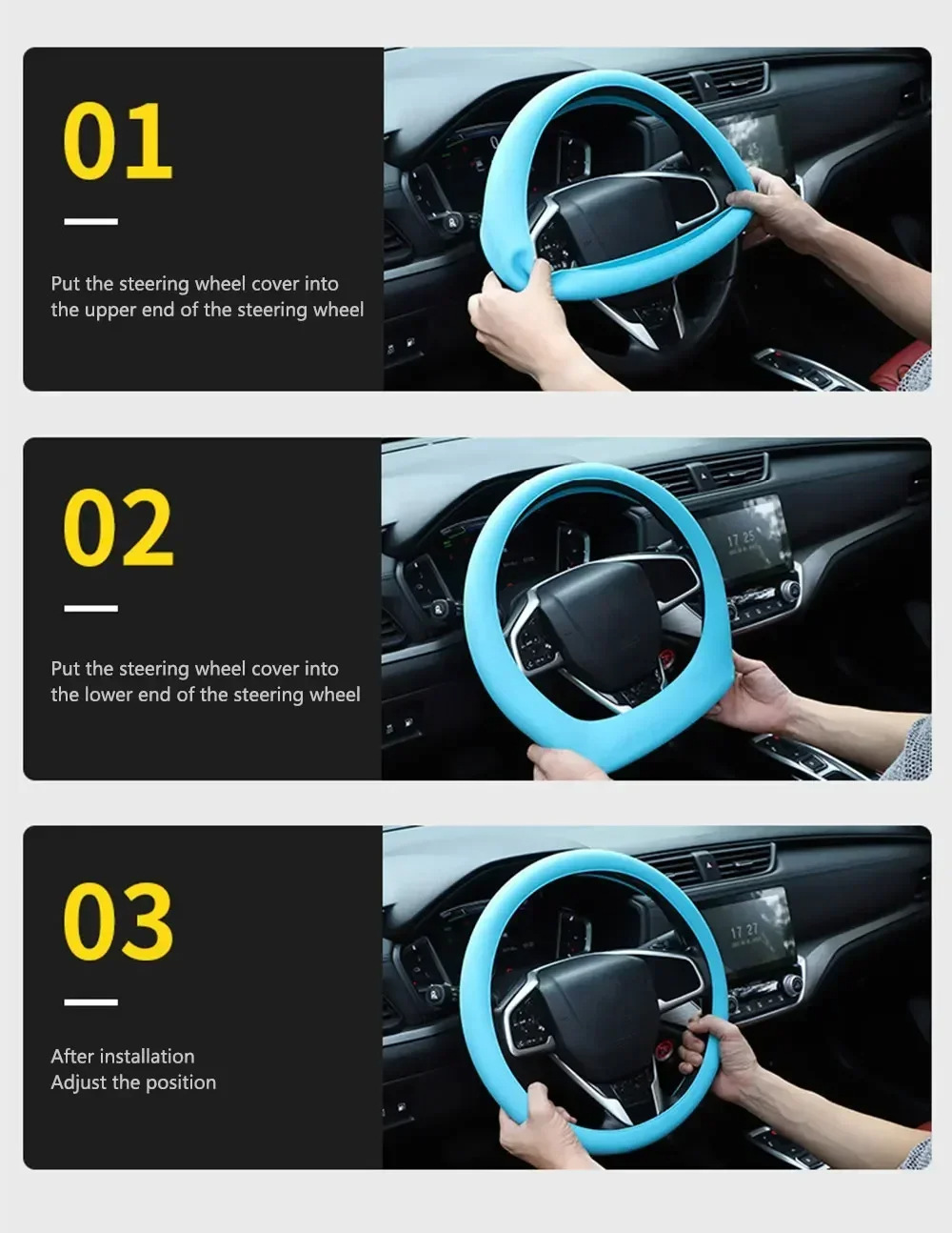 AliExpress 뜨거운 판매 자동차 핸들 커버 미끄럼 방지 땀 방지 실리콘 핸들 커버 32-40cm 범용 스티어링 휠 커버스토어 가기