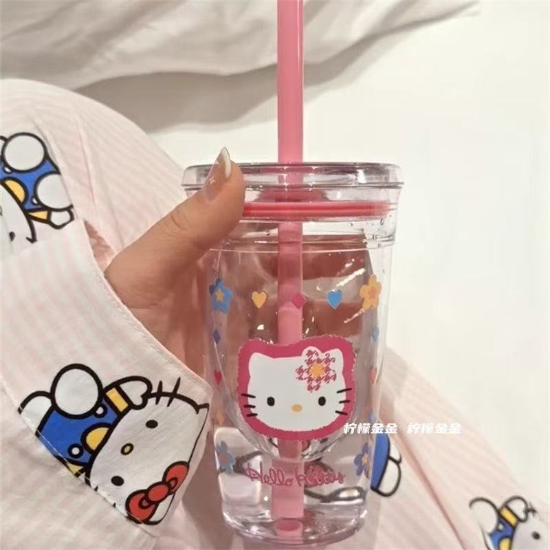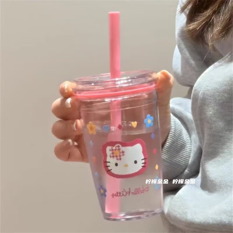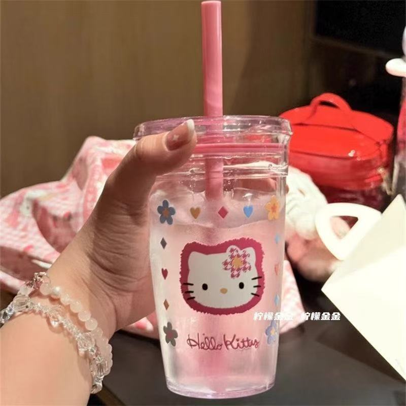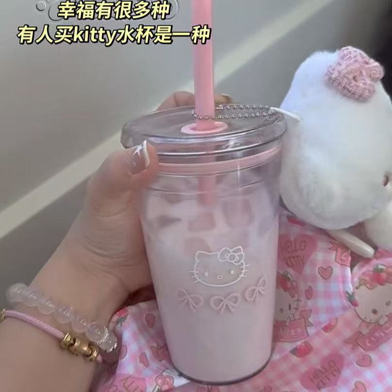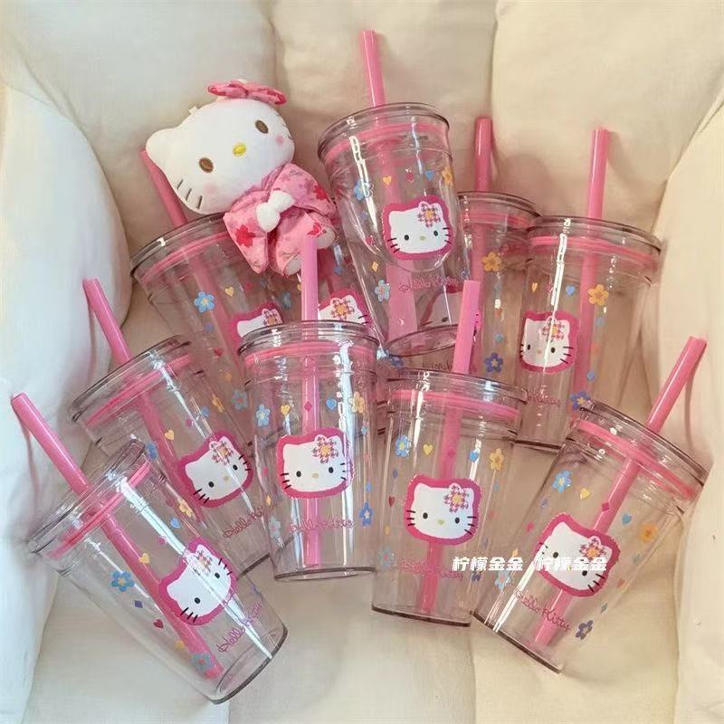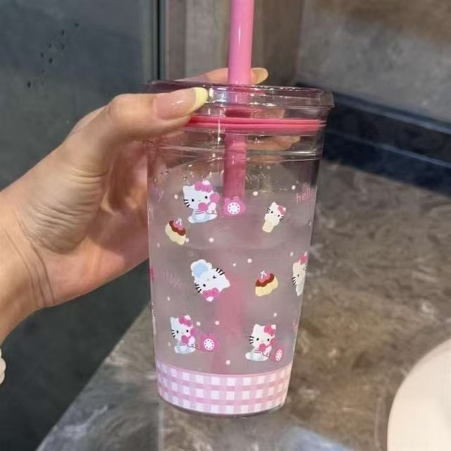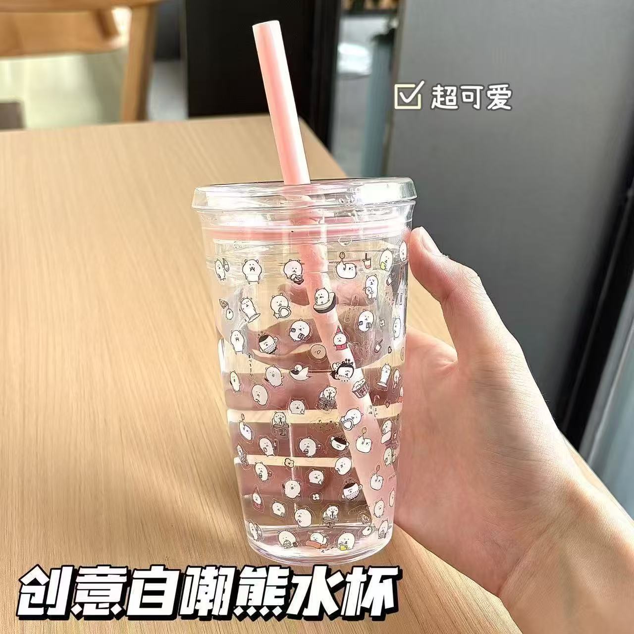 핑크 물컵, 심플한 투명 플라스틱 밀짚컵, 고급스러운 소녀 플라스틱 컵, 밀짚형 물컵, 고온 방지스토어 가기