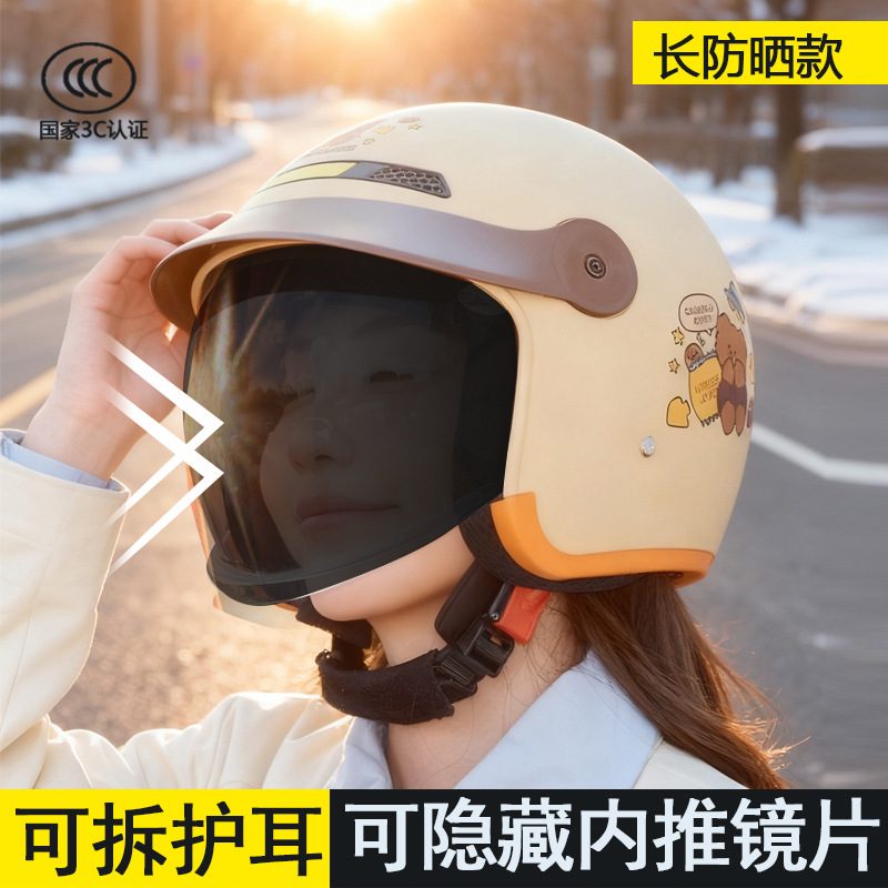전기 오토바이 헬멧 챙 모델 3C 인증 남성 및 여성 올 시즌 겨울 따뜻하고 안개 방지 안전 헬멧
