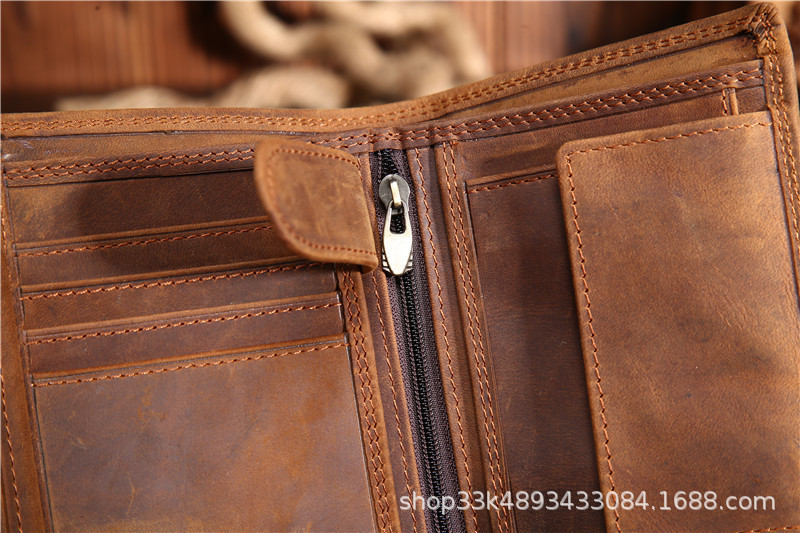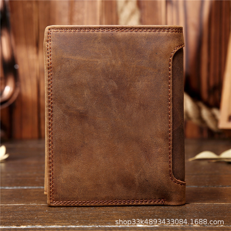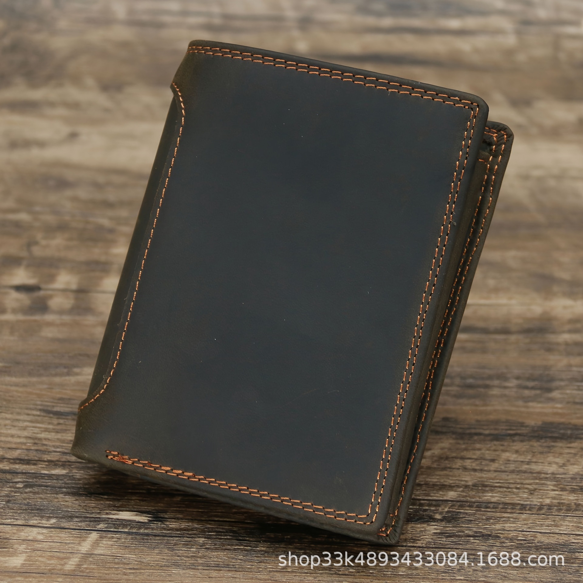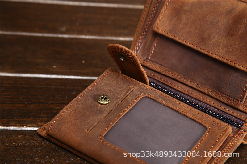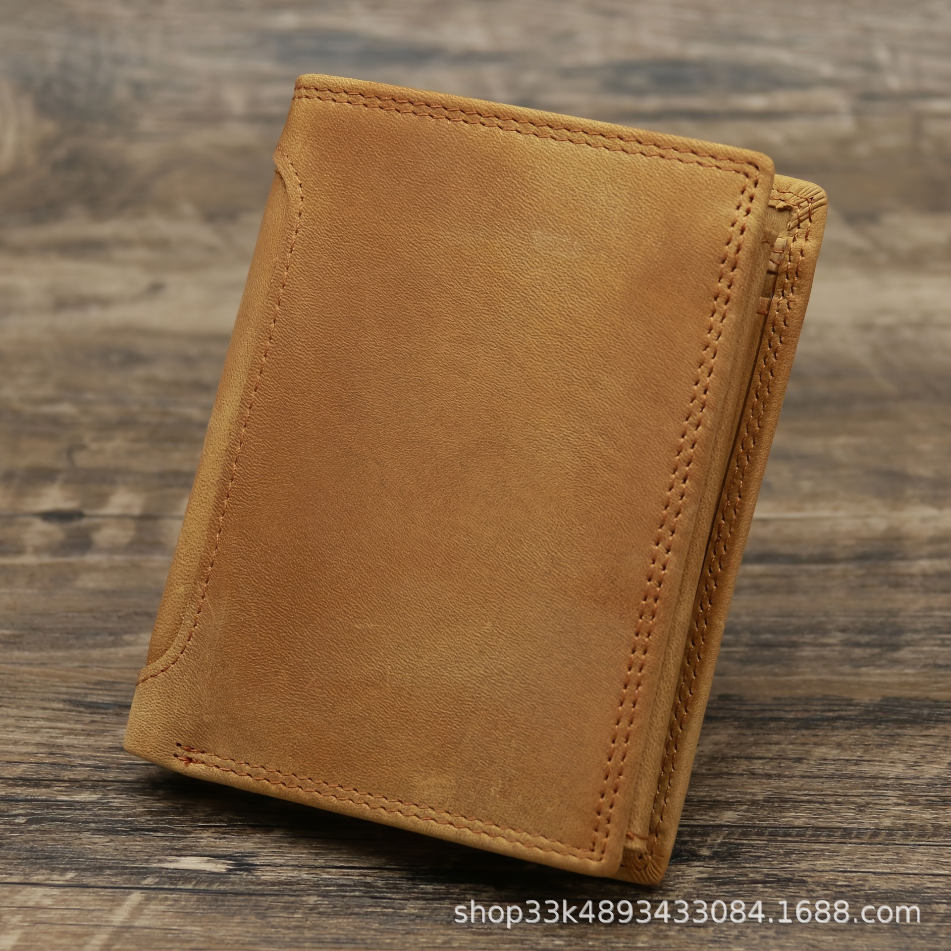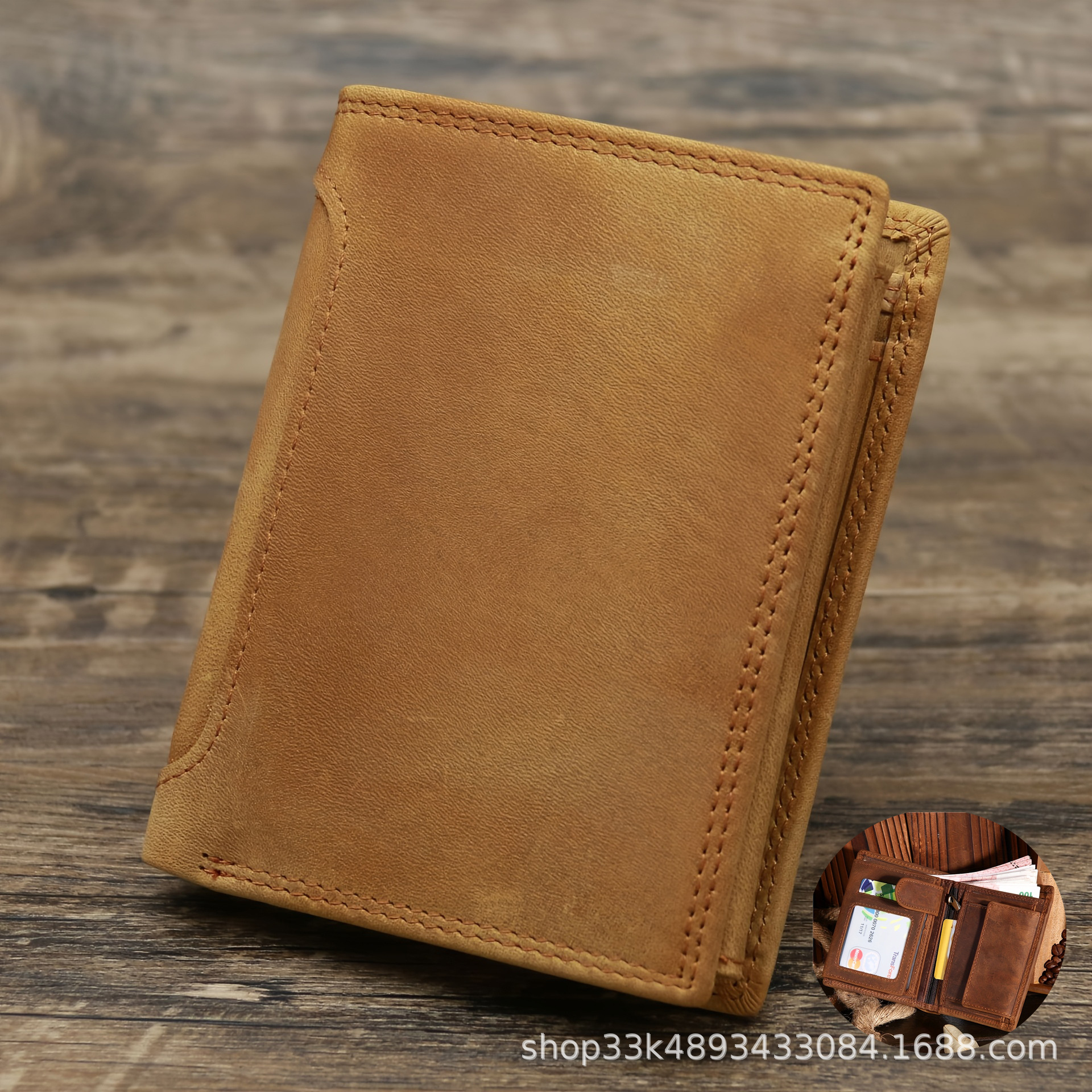 국경 간 복고풍 정품 가죽 짧은 남성용 지갑 다기능 카드 슬롯 지퍼 동전 위치 RFID 도난 방지 지갑스토어 가기