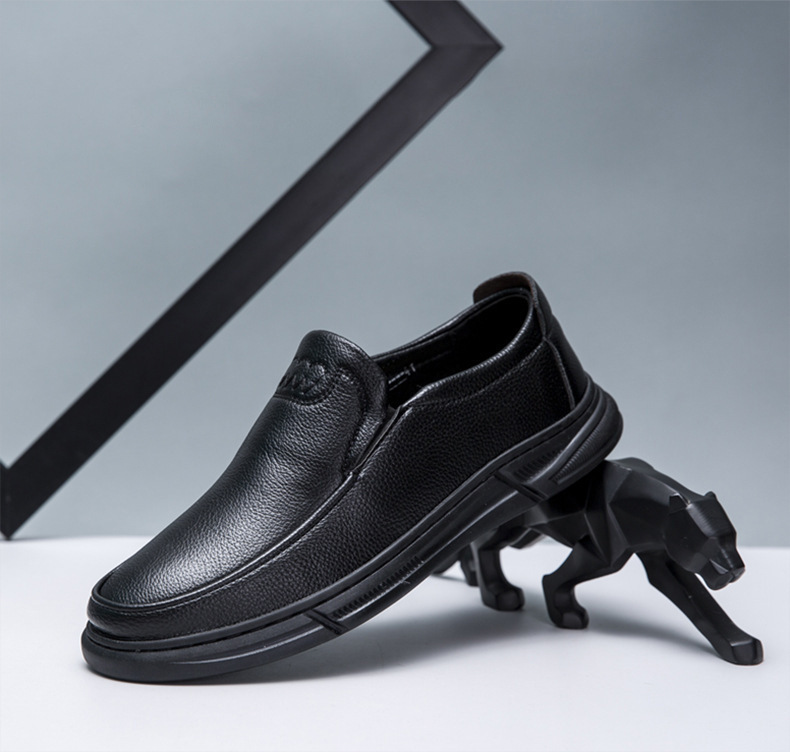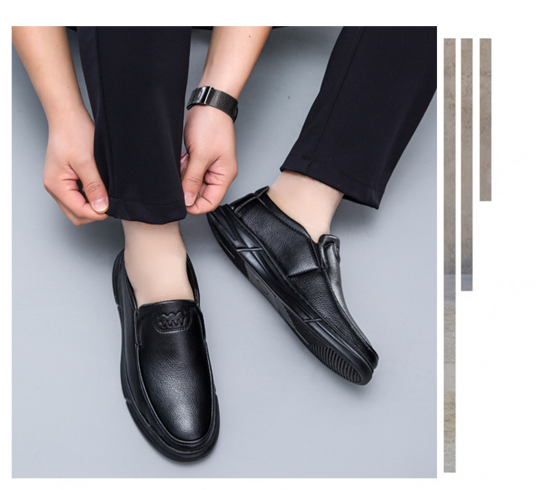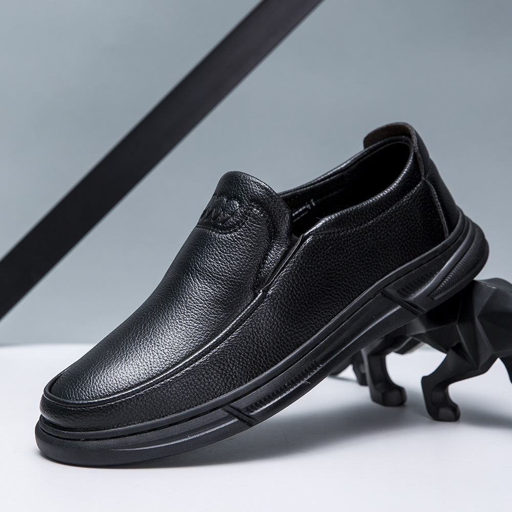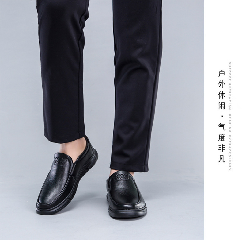 도매 남성 신발 새로운 비즈니스 슬립온 중년 및 노인 아빠 신발 둥근 발가락 부드러운 밑창 편안하고 통기성이 뛰어난 트렌디한 남성 가죽 신발스토어 가기