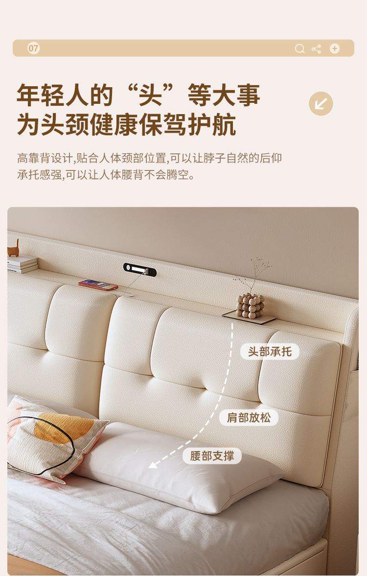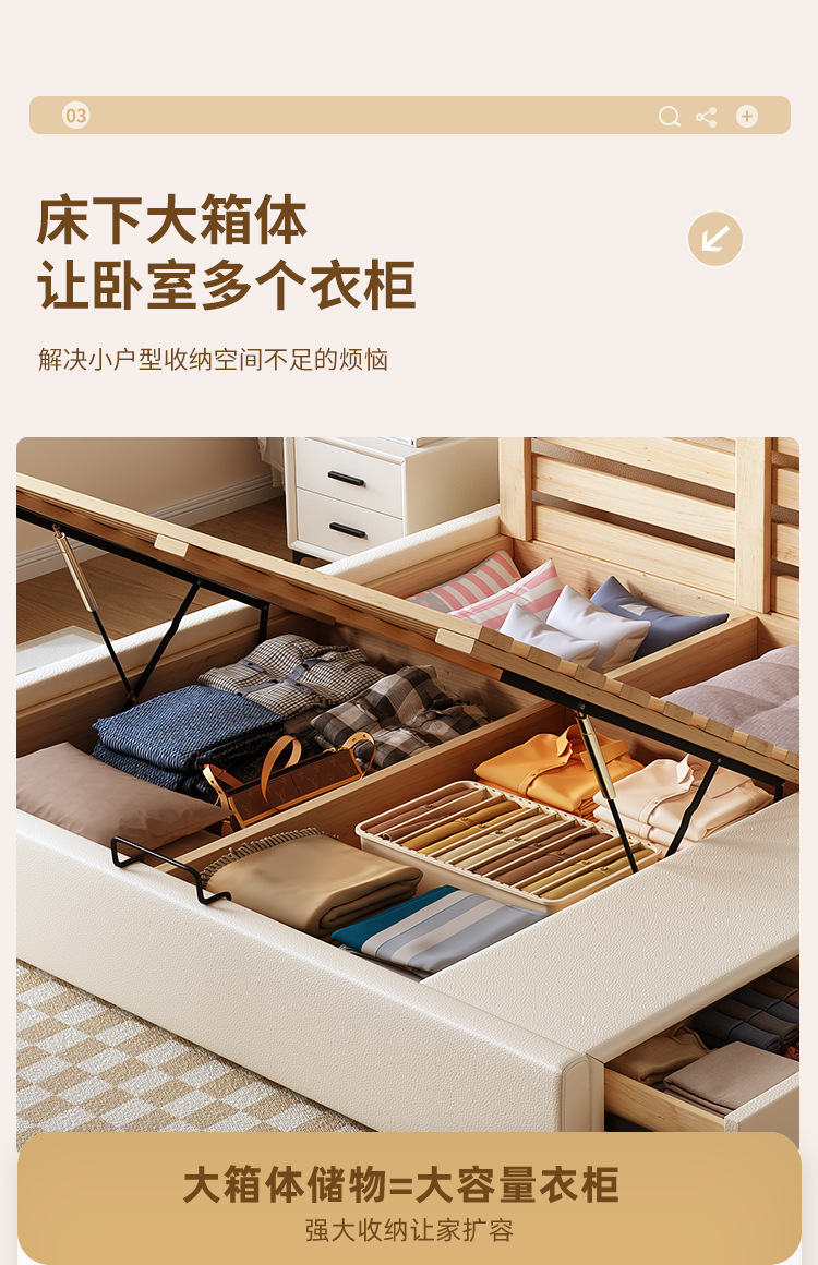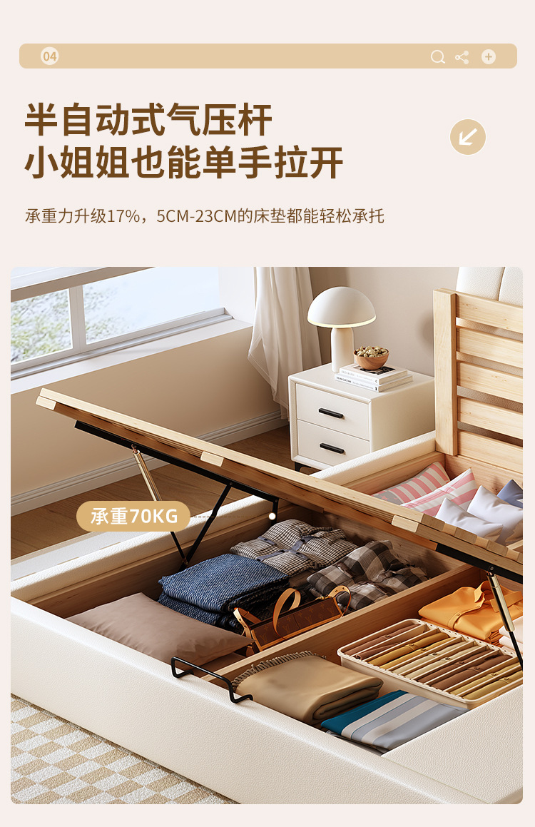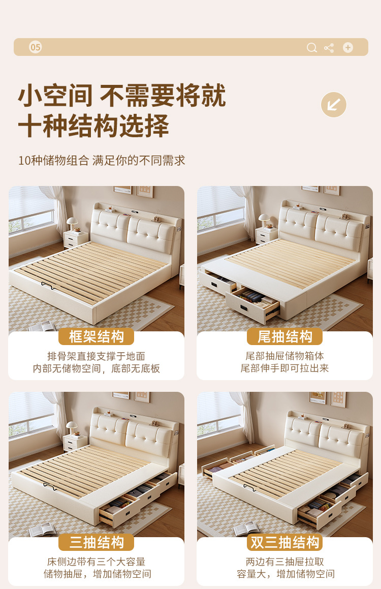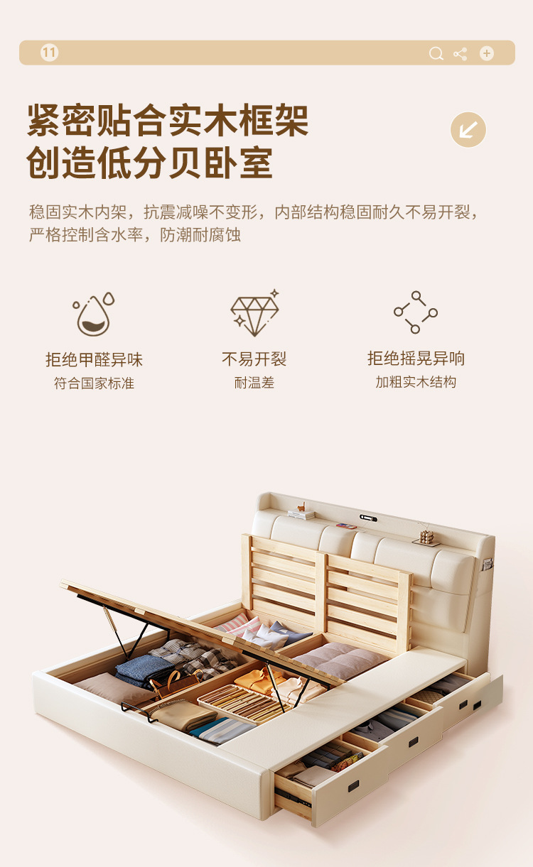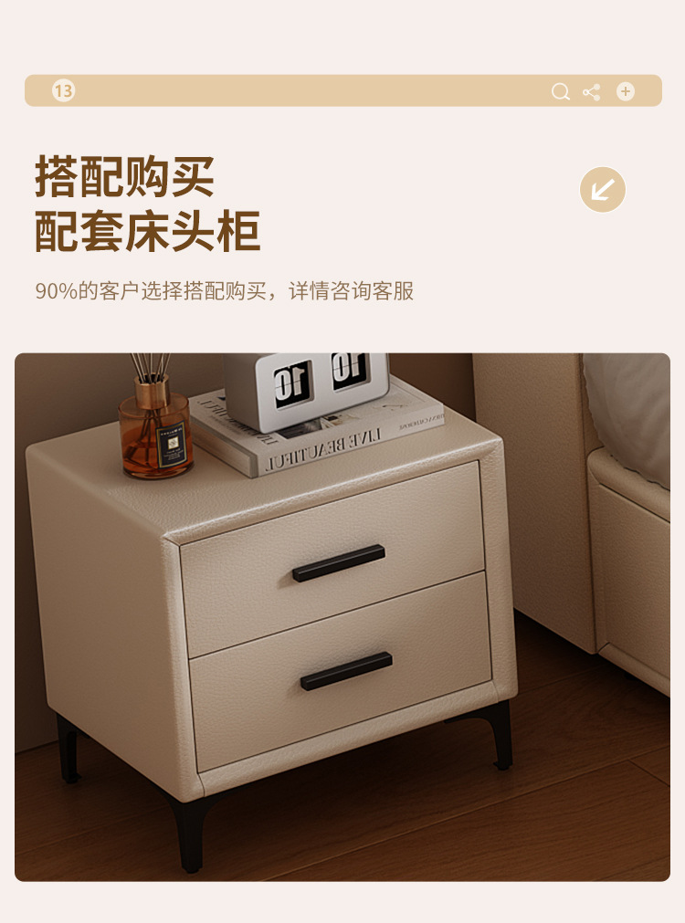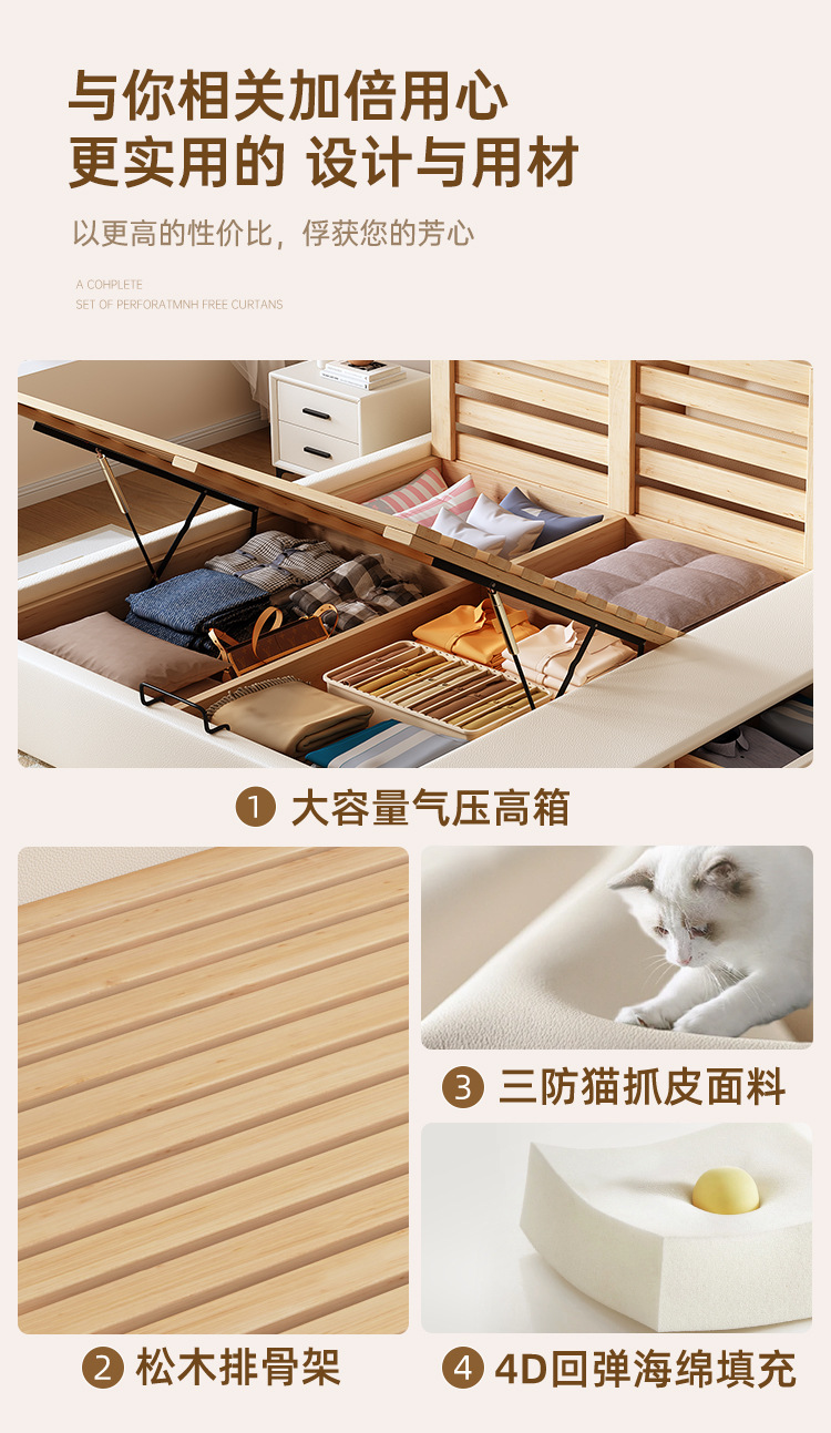 현대적인 미니멀리스트 다기능 가죽 침대 1.8m 서랍이 있는 하이박스 수납 라이트 럭셔리 소프트 백 하이엔드 원목 더블 웨딩 침대스토어 가기