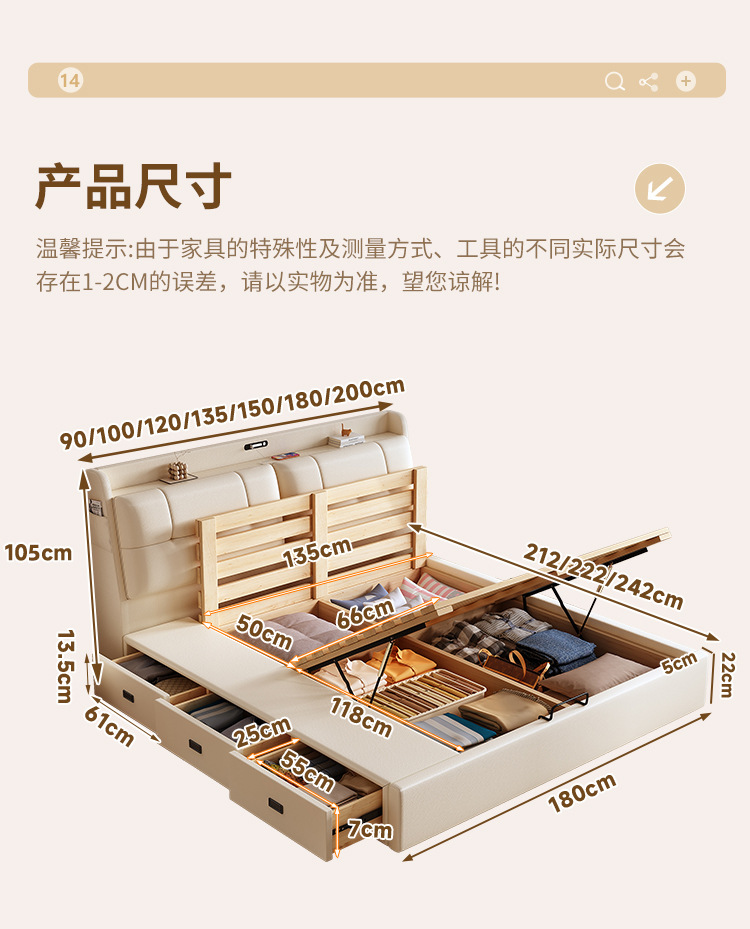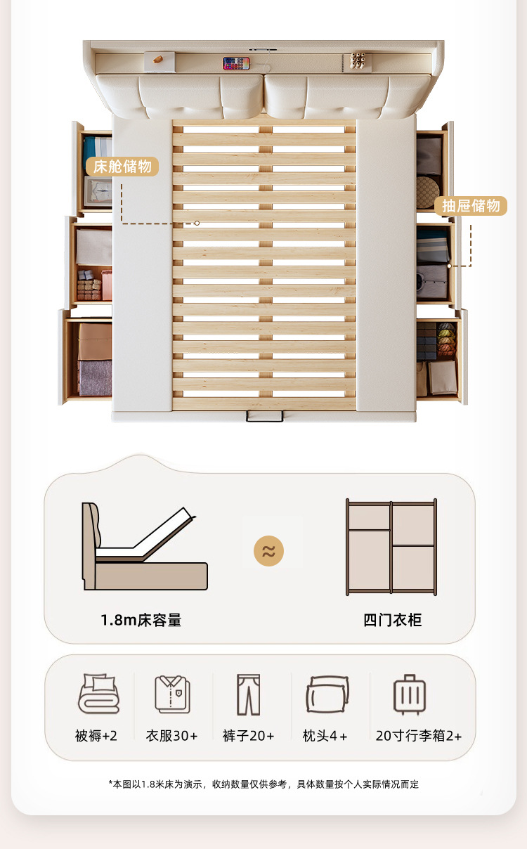 • [암호화 모델] 측면 압력 3단 서랍형 무소음 침대 + 20cm 라텍스 코코넛 야자 매트