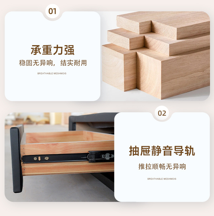 • [암호화 모델] 측면 압력 3단 서랍형 무소음 침대