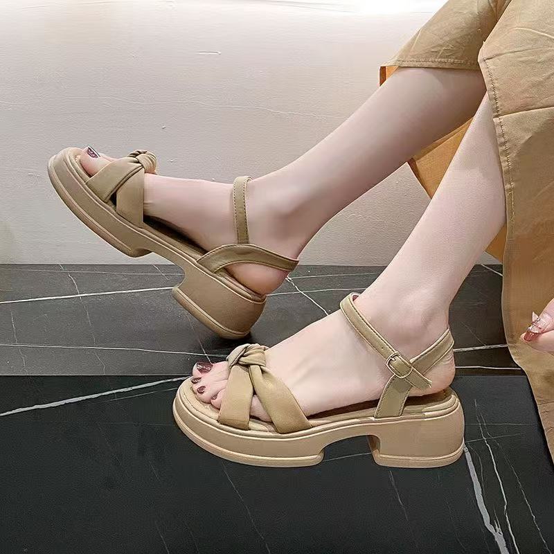 여성용 원라인 패셔너블 비치 슈즈, 페어리 스타일 아우터웨어, 2025 여름 신작 여성용 리본 두꺼운 굽 샌들
