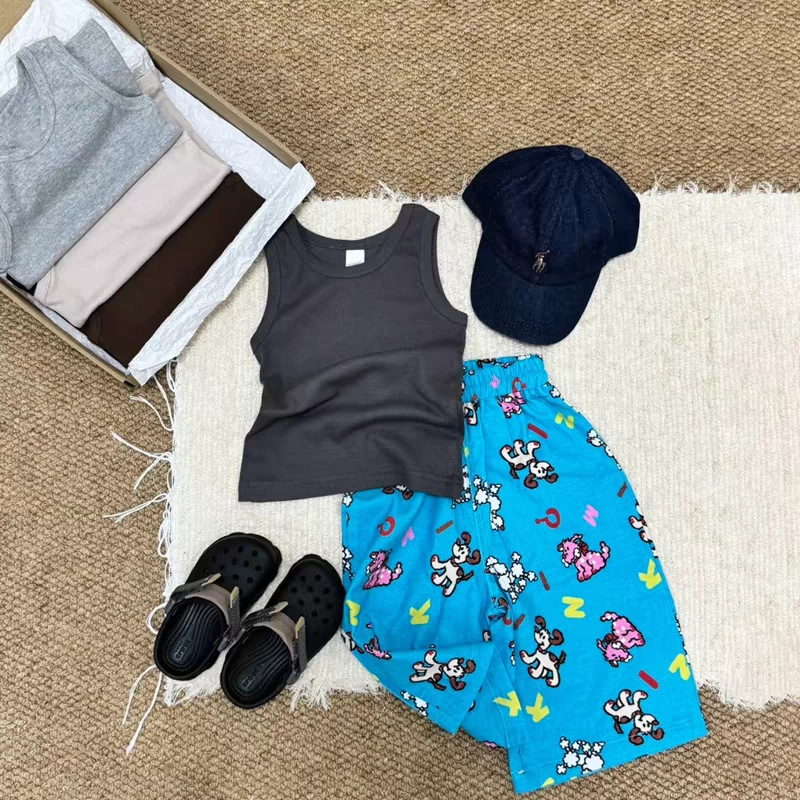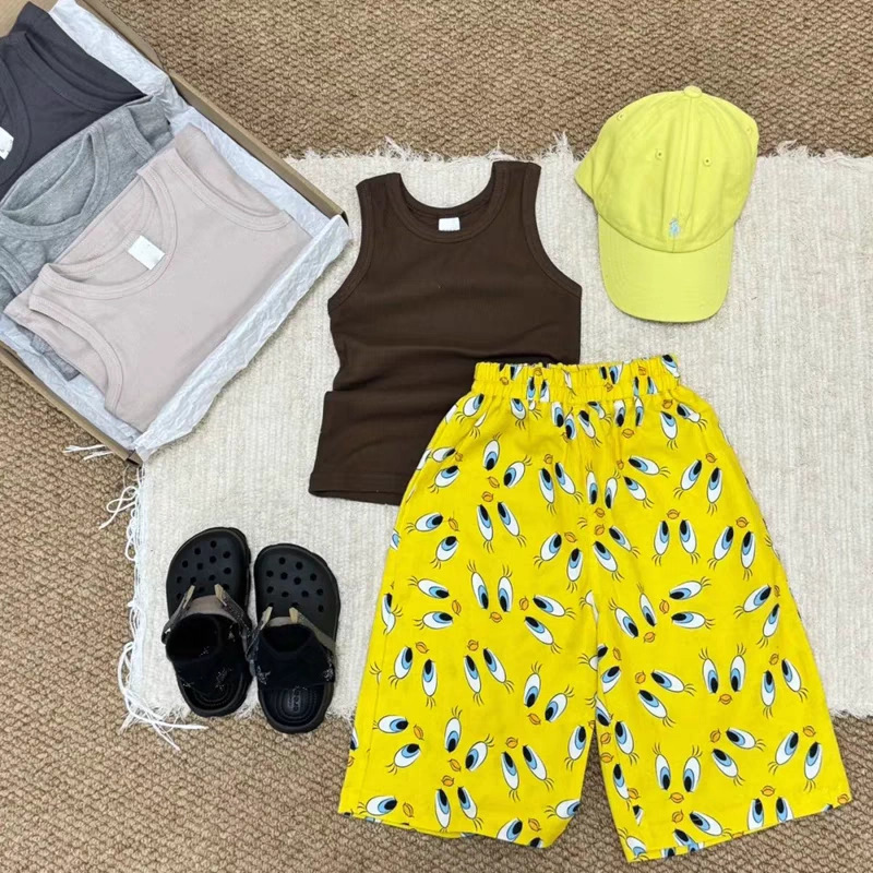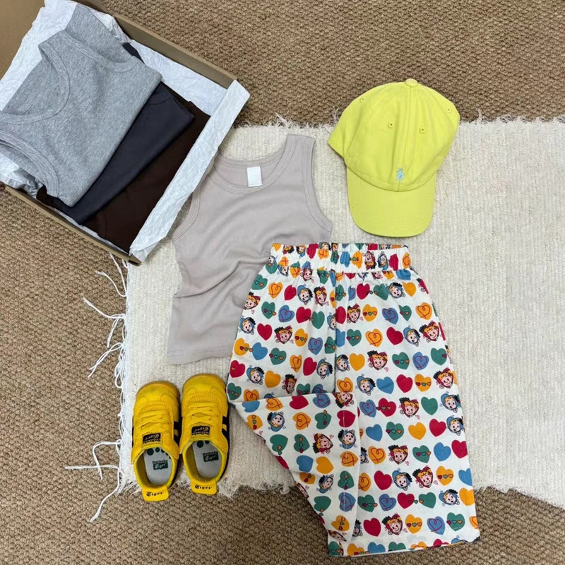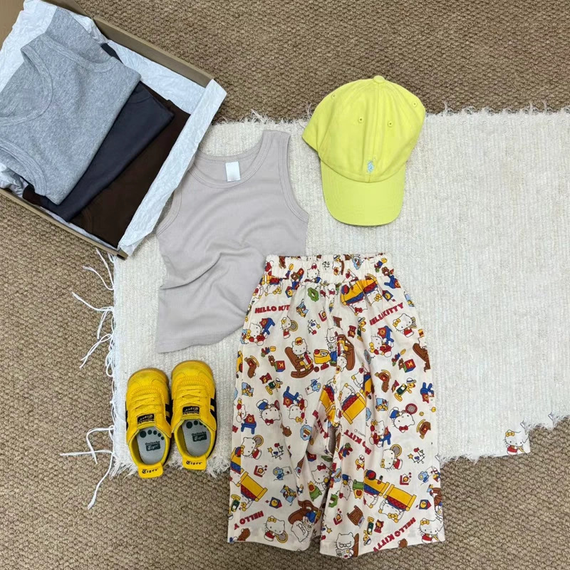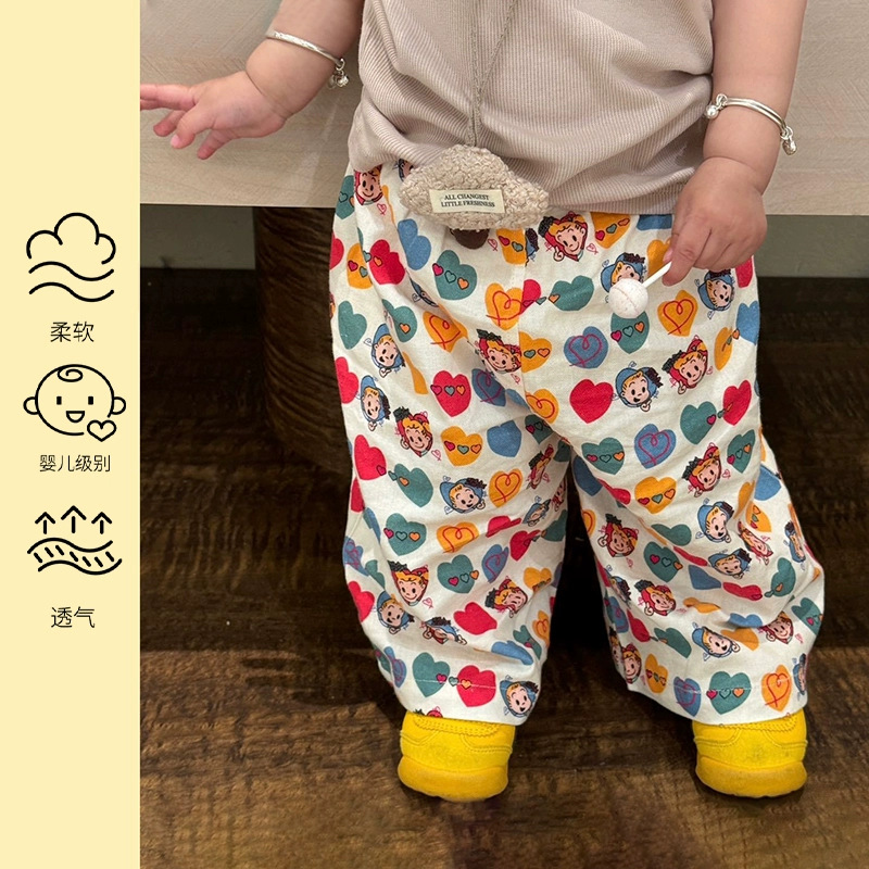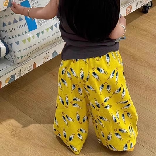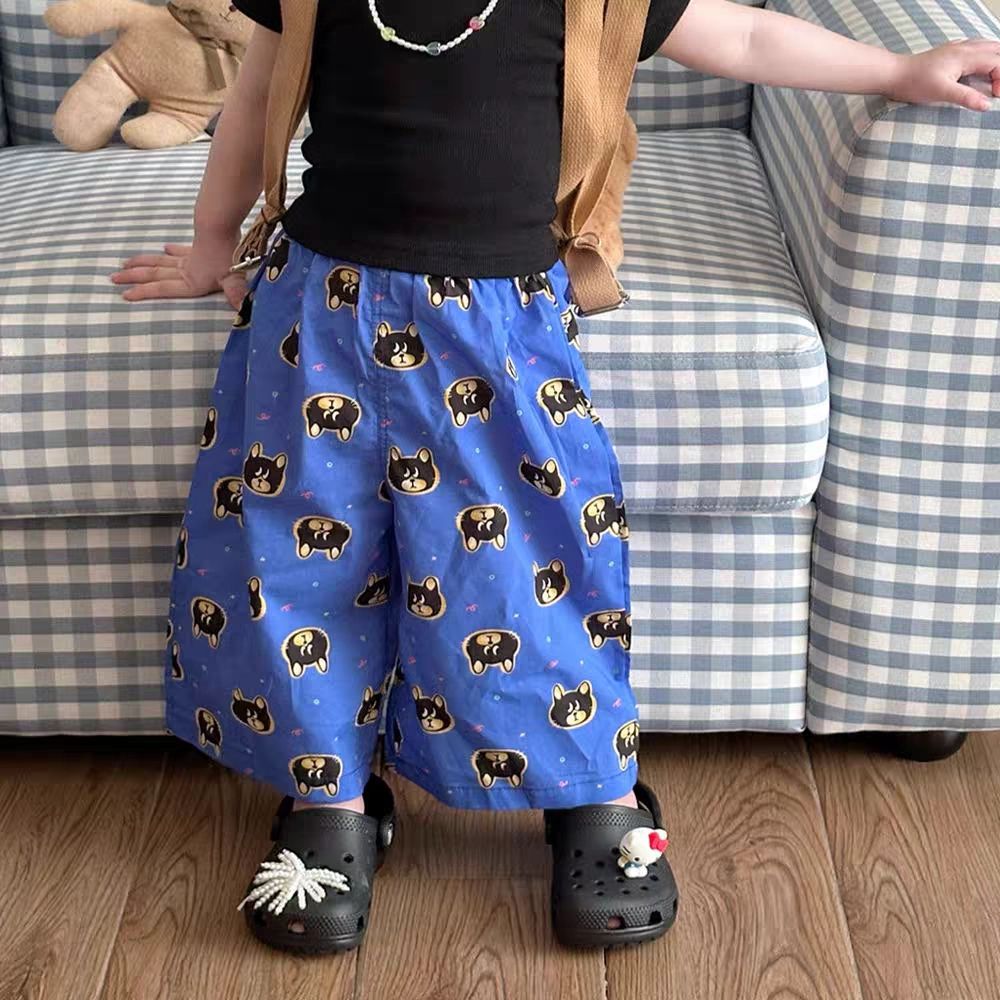 여름 신작 한국 만화 프린트 바지(남아 및 여아용), 편안하고 캐주얼한 신축성 있는 와이드 팬츠, 모기 방지 바지스토어 가기