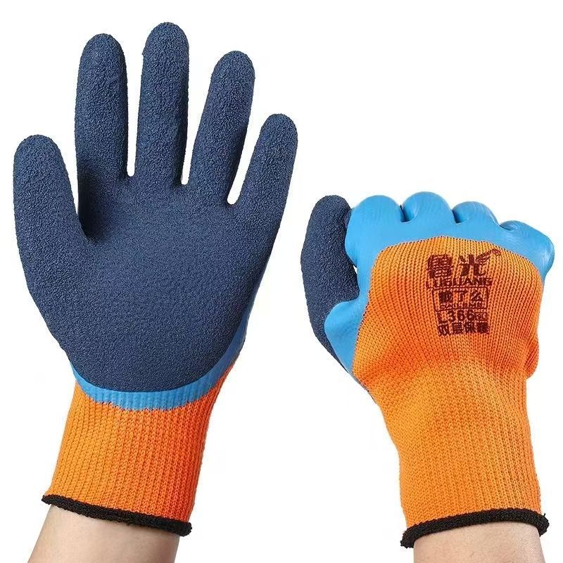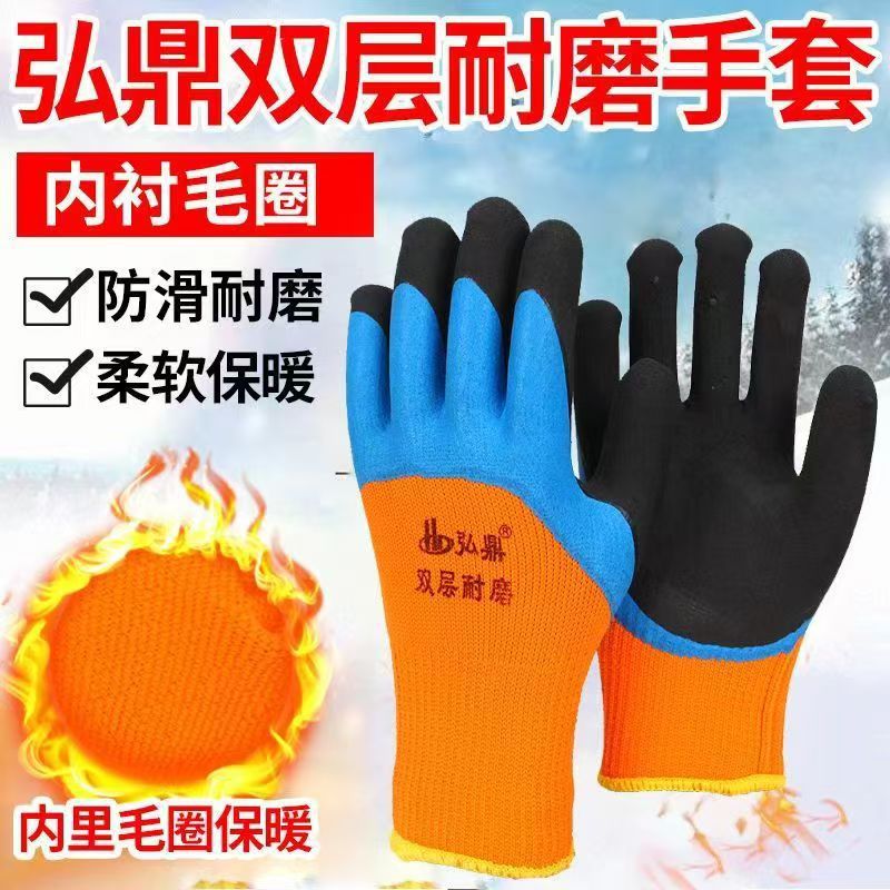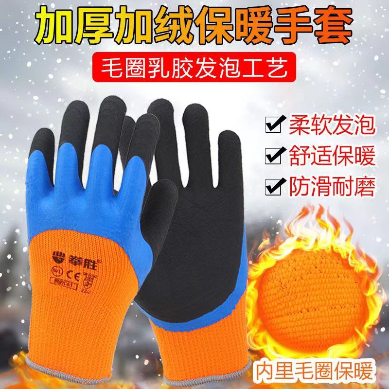 두꺼운 벨벳 테리 폼 노동 보호 장갑, 따뜻하고 내마모성, 미끄럼 방지, 매우 두꺼운 고무 함침 건설 현장 건설 보호 도매스토어 가기