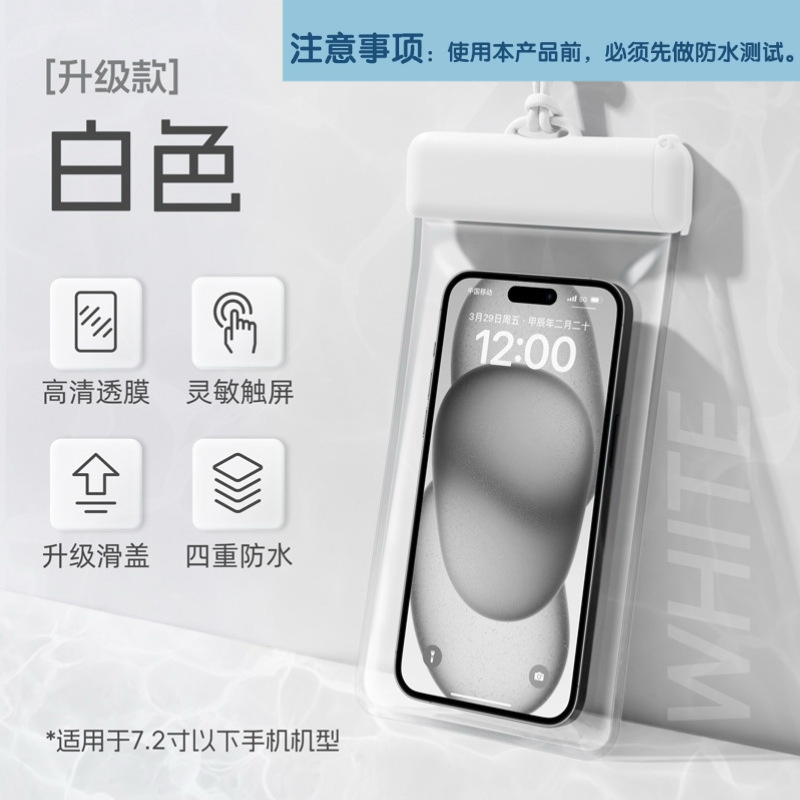 • [방수 휴대폰 가방] 펄 화이트 [레벨 8 방수丨터치 감지丨HD 사진]