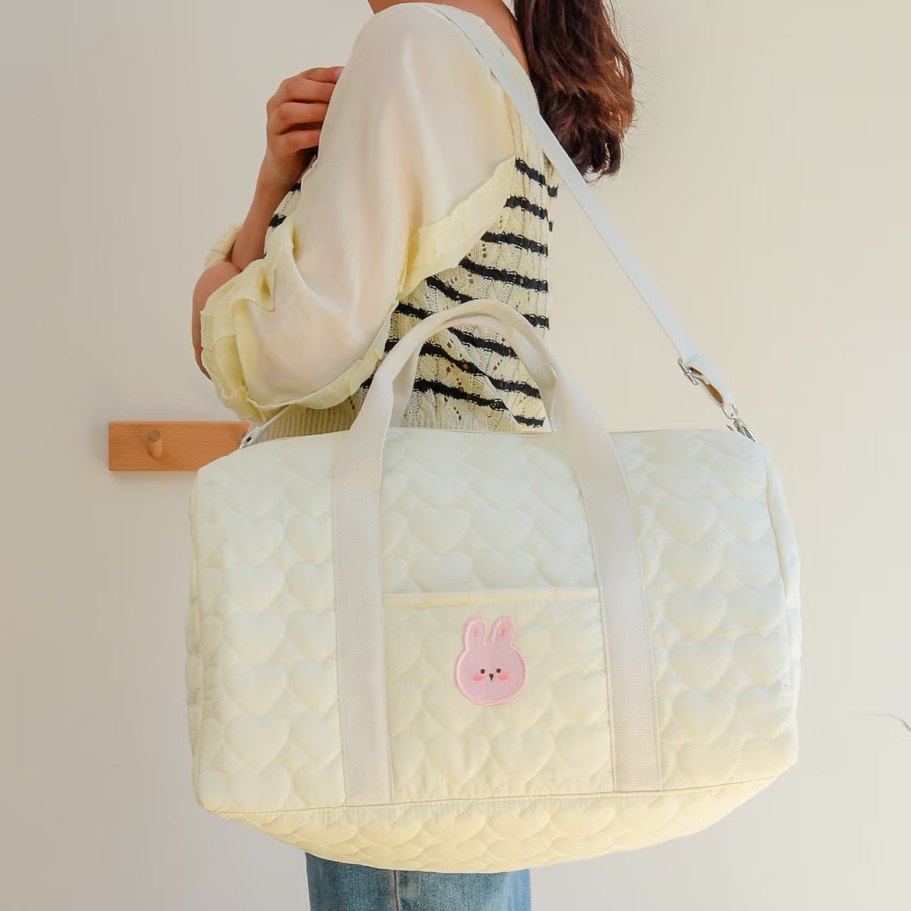 • 화이트 러브 싱글 래빗 헤드 보스턴 백
