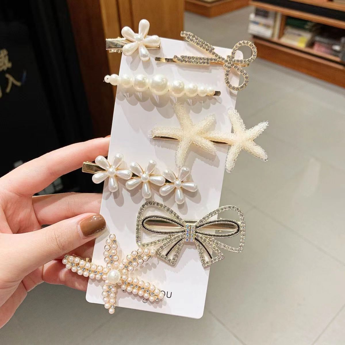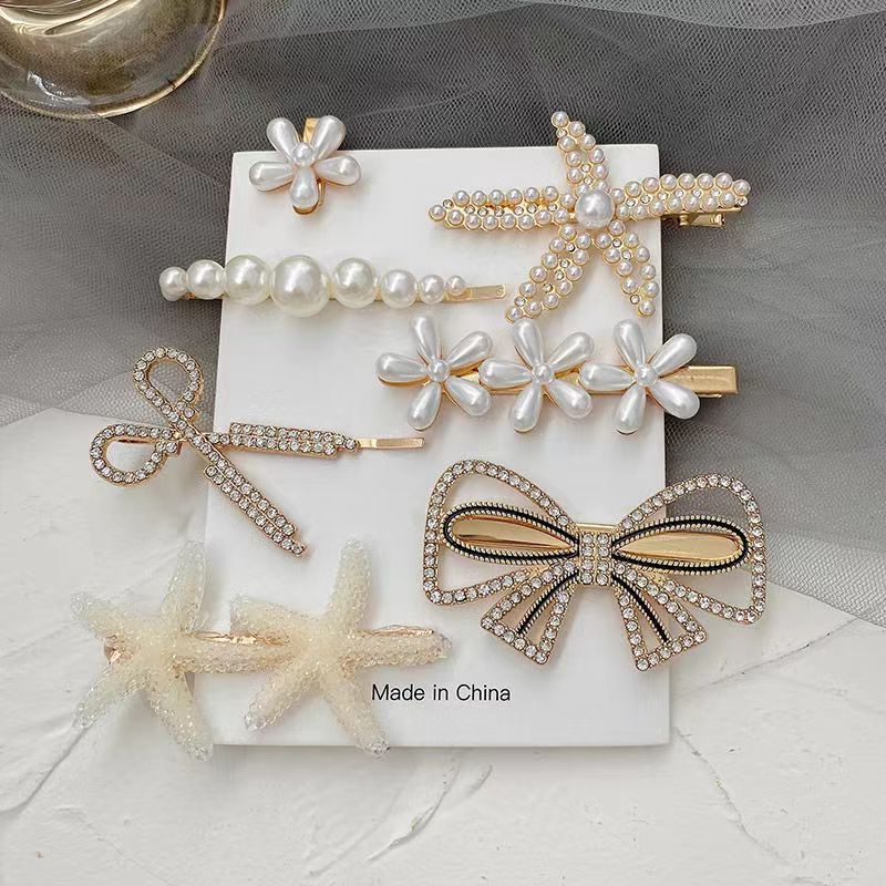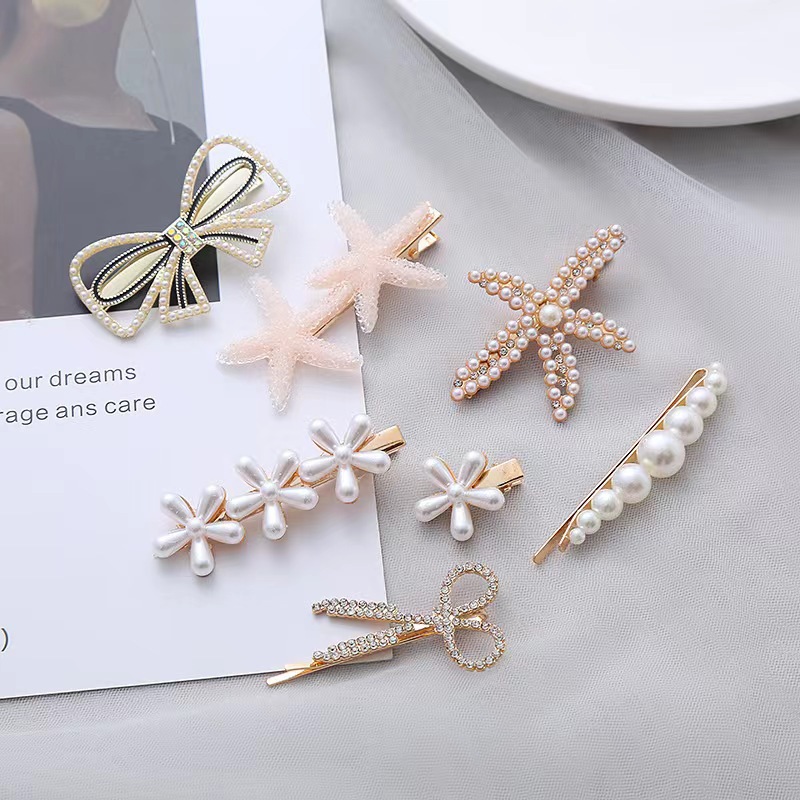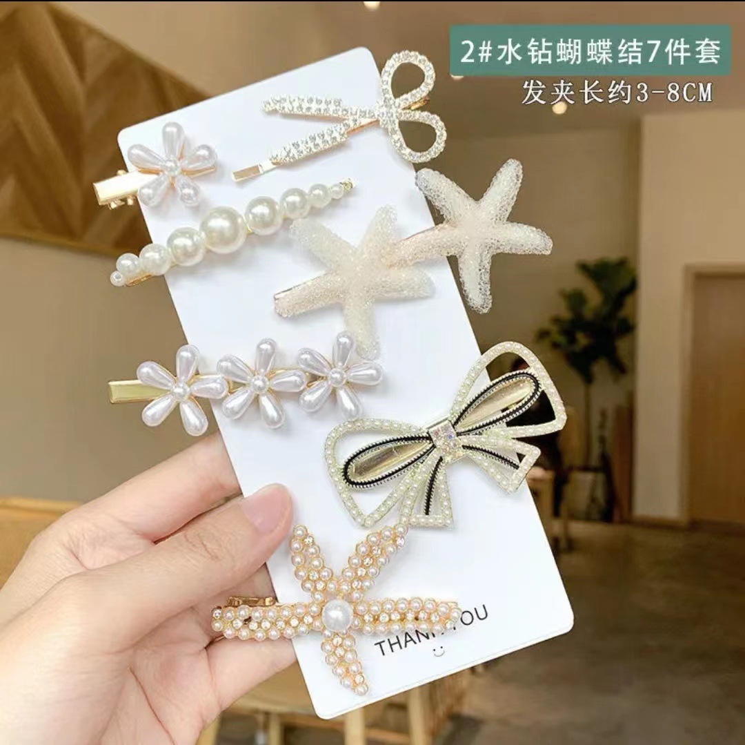 진주 라인스톤 7종 세트, 인터넷 연예인 핫 스타일 꽃 불가사리 앞머리 클립 탑 클립 사이드 클립 원라인 클립 여성용 헤어 액세서리스토어 가기