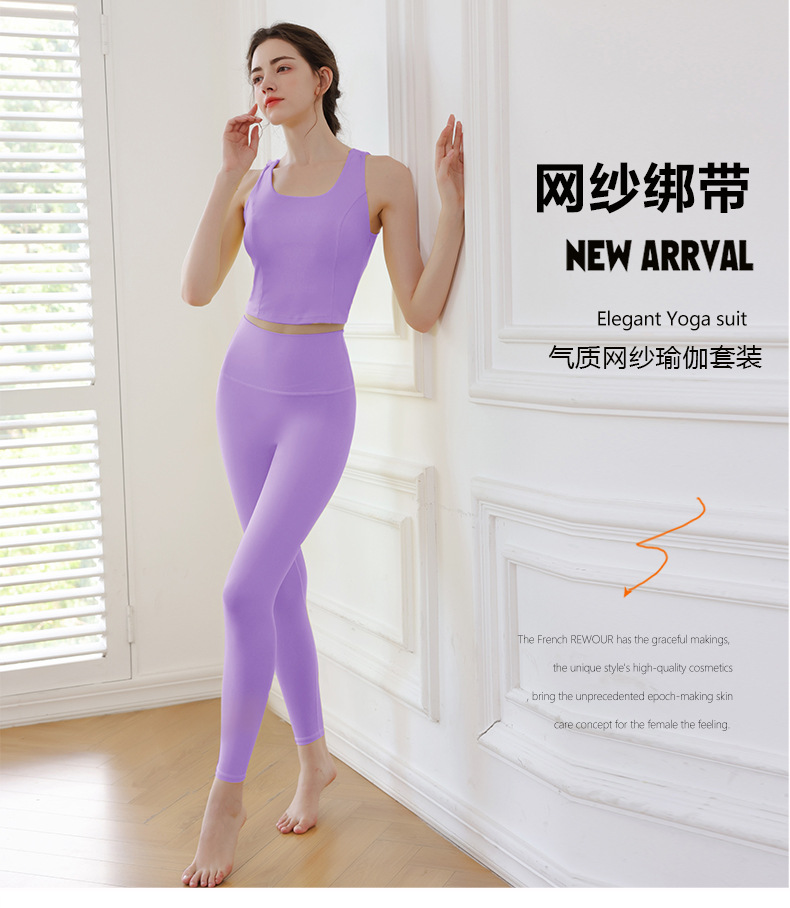 메쉬 스트랩 스포츠 요가 슈트, 여성스럽고 섹시한 크로스백, 전문 런닝 타이트 피트니스 슈트스토어 가기