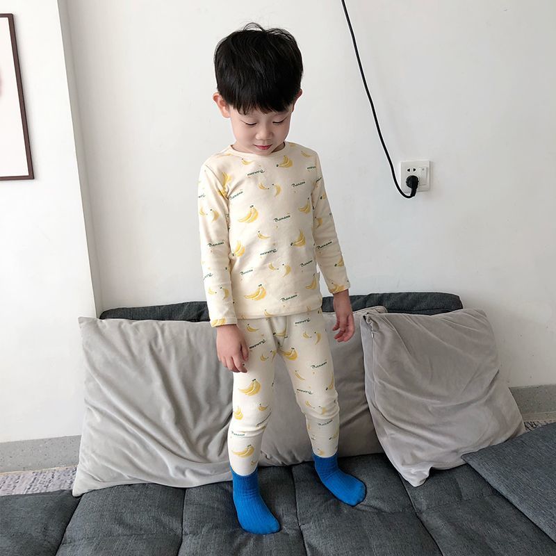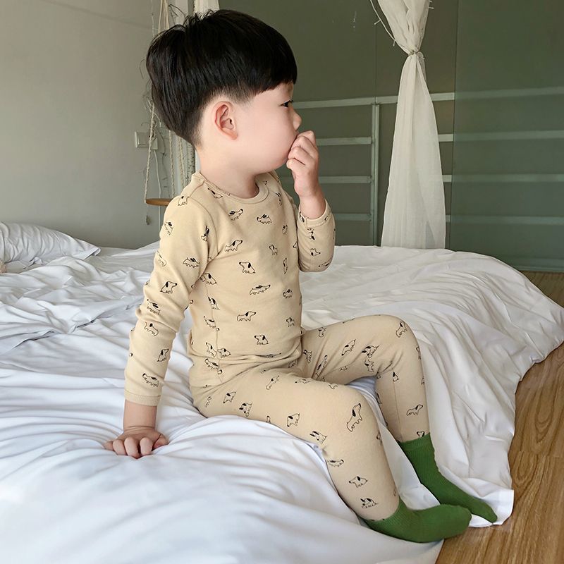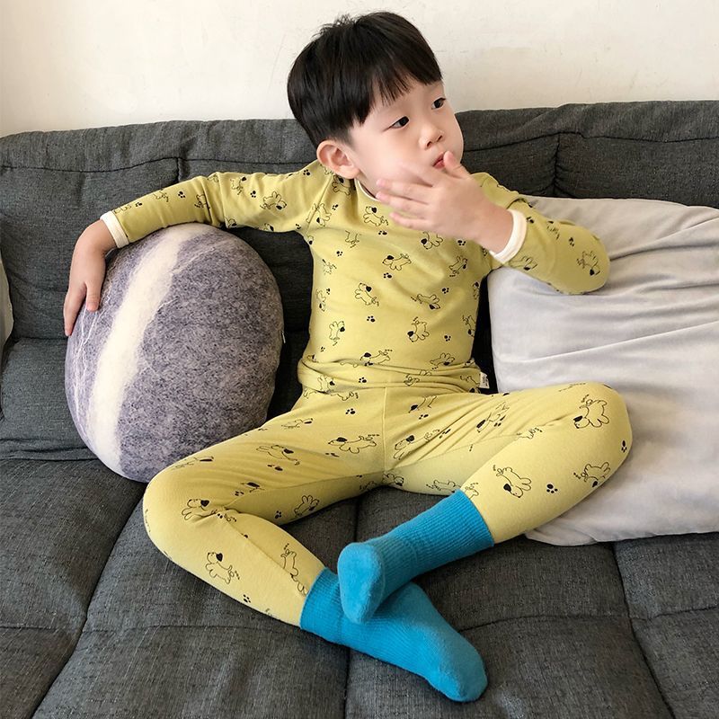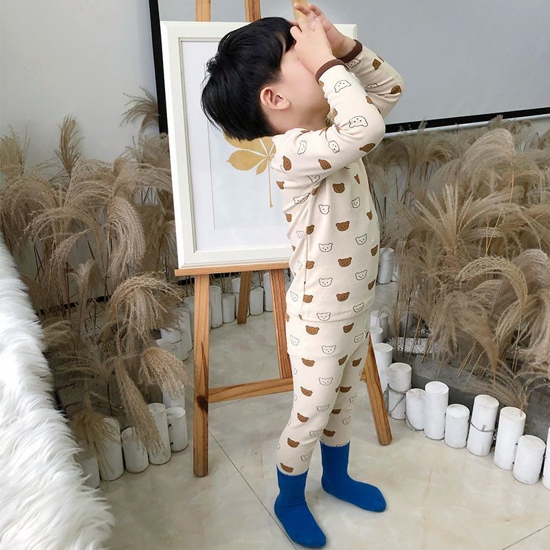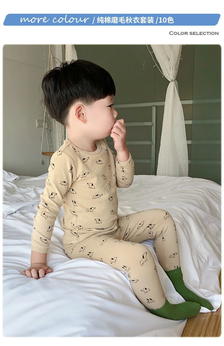 클래스 A 어린이 순면 가을 옷과 긴 바지, 소년의 기모 긴팔 바닥 잠옷, 여자 아기의 가을 겨울 가정복 세트