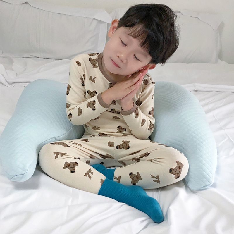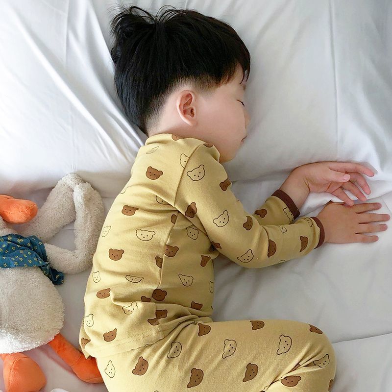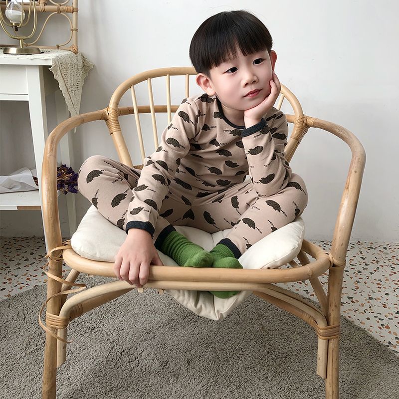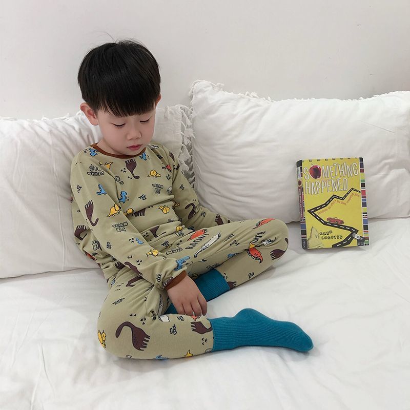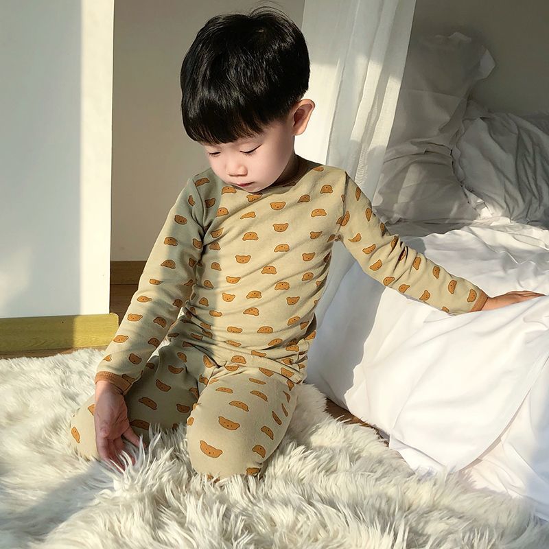클래스 A 어린이 순면 가을 옷과 긴 바지, 소년의 기모 긴팔 바닥 잠옷, 여자 아기의 가을 겨울 가정복 세트