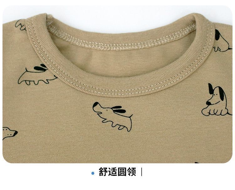 클래스 A 어린이 순면 가을 옷과 긴 바지, 소년의 기모 긴팔 바닥 잠옷, 여자 아기의 가을 겨울 가정복 세트스토어 가기