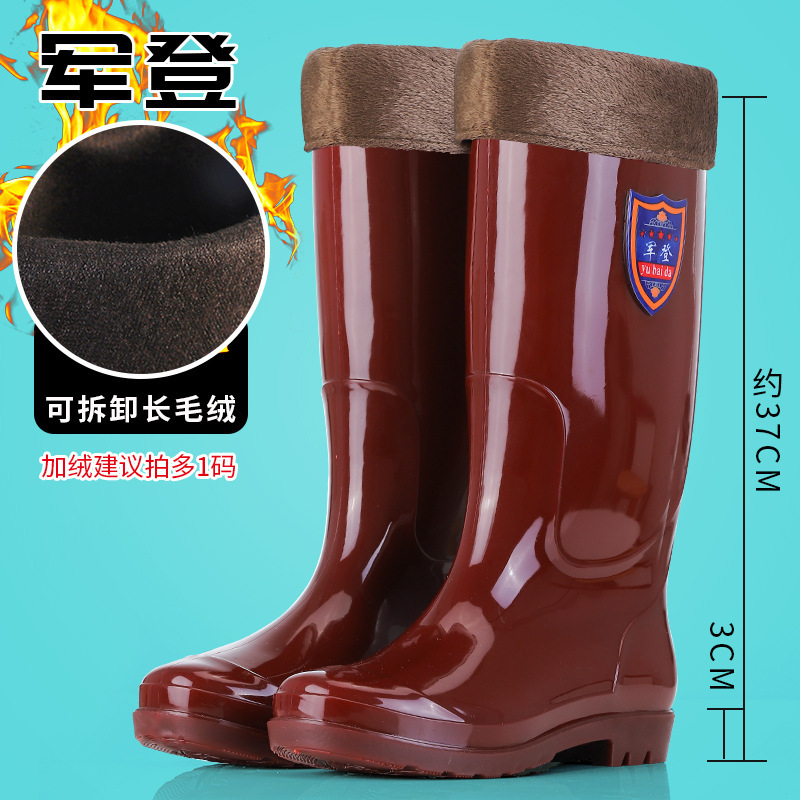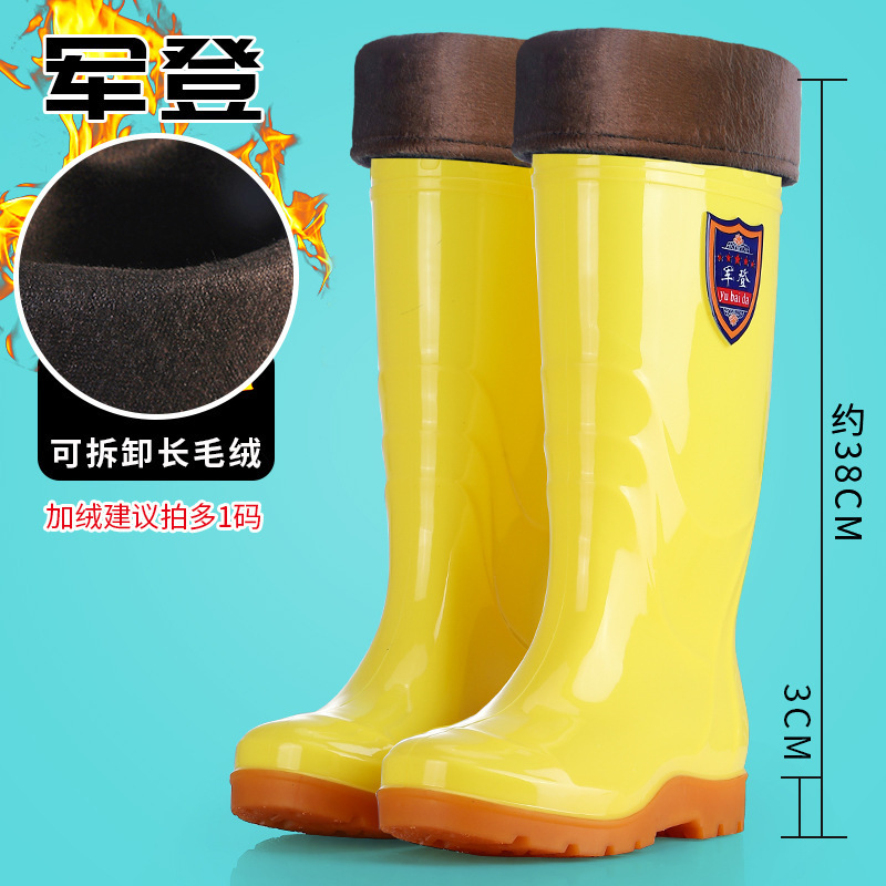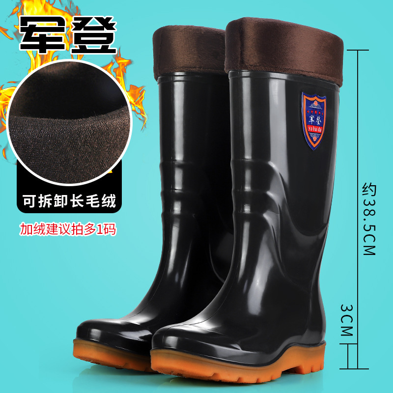 여성용 레인부츠, 남성용 하이탑 작업 및 노동 보호 미끄럼 방지 롱 레인부츠, 남성용 힘줄 밑창, 바다낚시 고무신, 벨벳 워터슈즈스토어 가기
