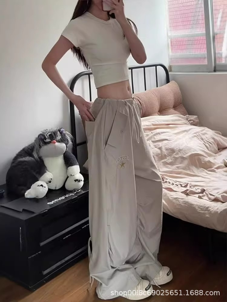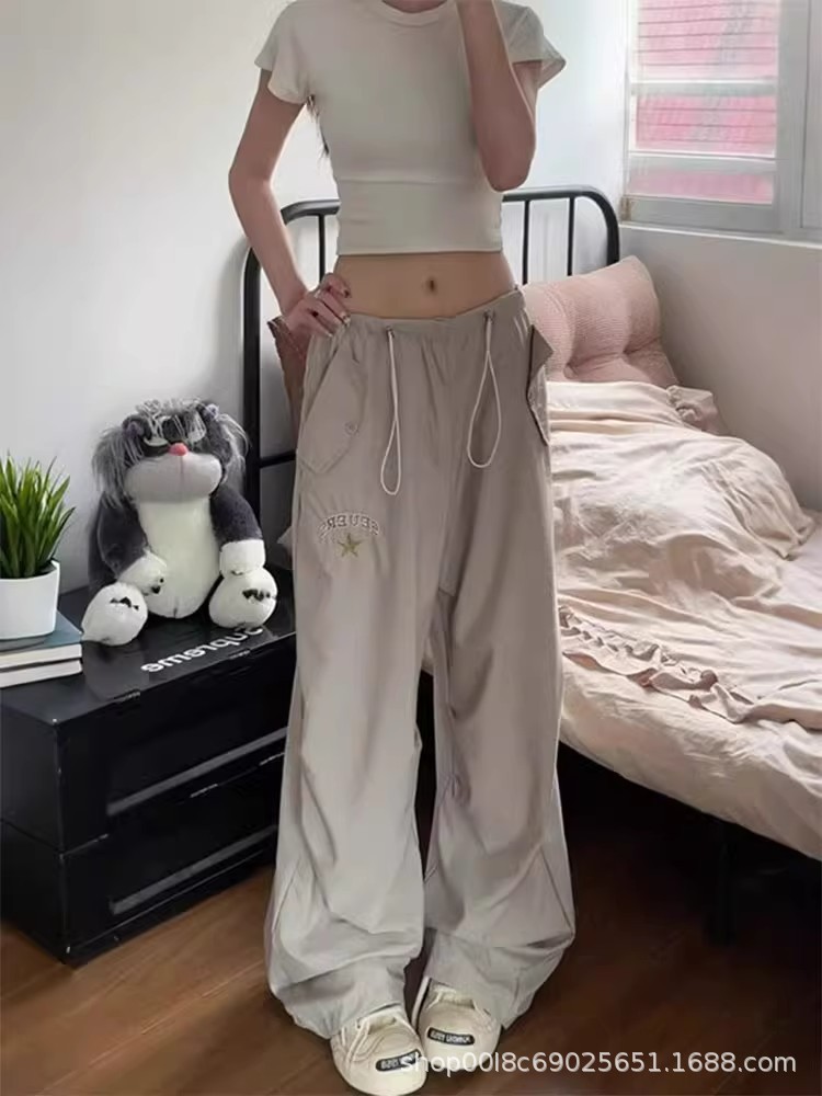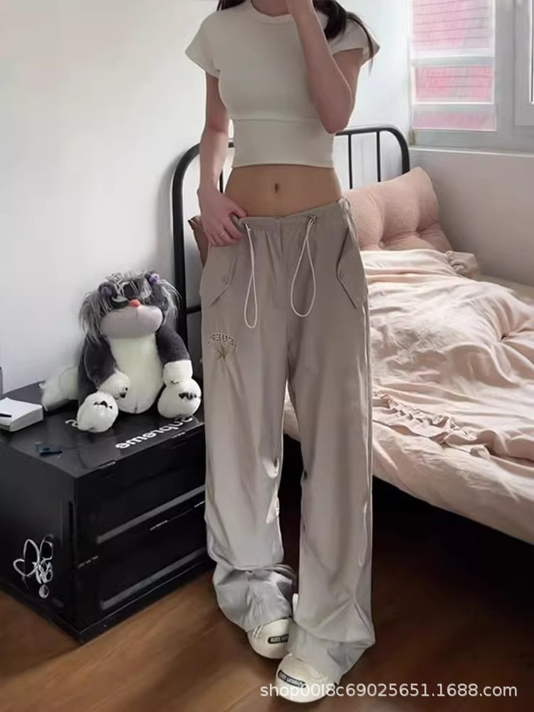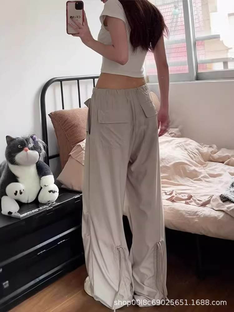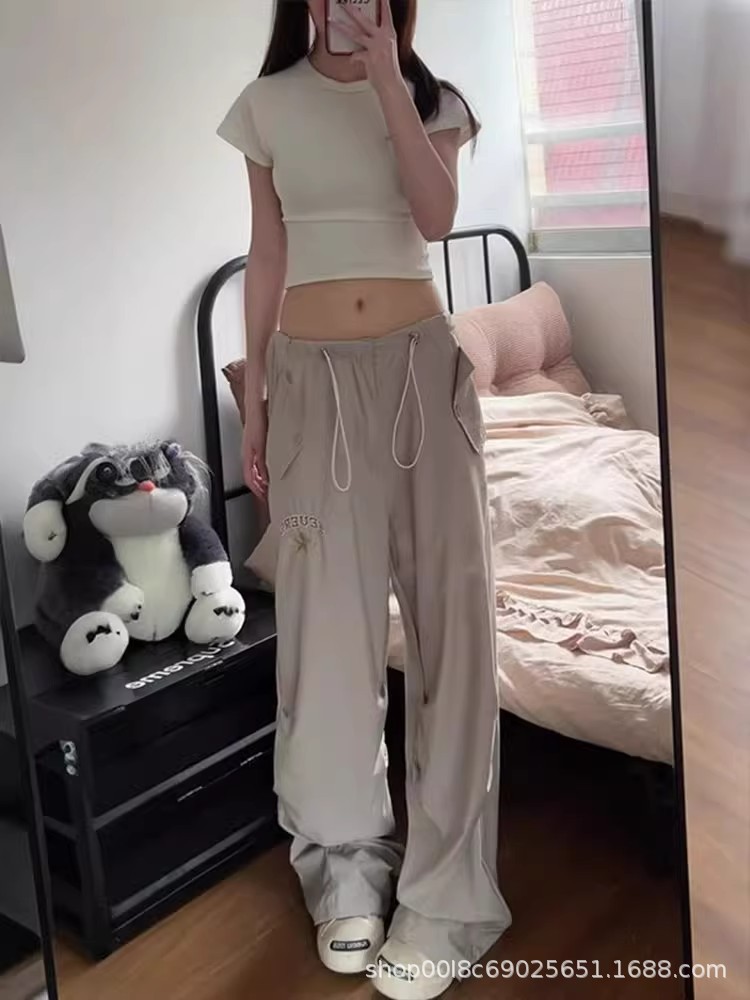 여성을위한 미국 복고풍 작업복 여름 2025 새로운 스타일 하이 웨이스트 드로우 스트링 슬리밍 세련된 게으른 스타일 레깅스 하이킹 바지스토어 가기