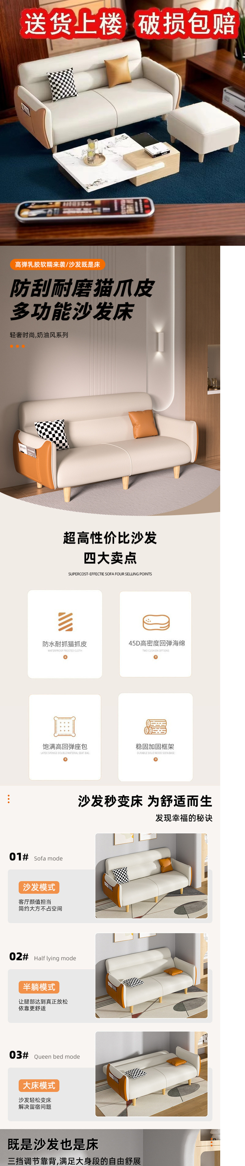 소파 베드, 고양이 스크래치 가죽 기술 천, 새로운 접이식 이중 목적, 다기능, 현대적인 소형 아파트, 잠자는 렌탈 룸