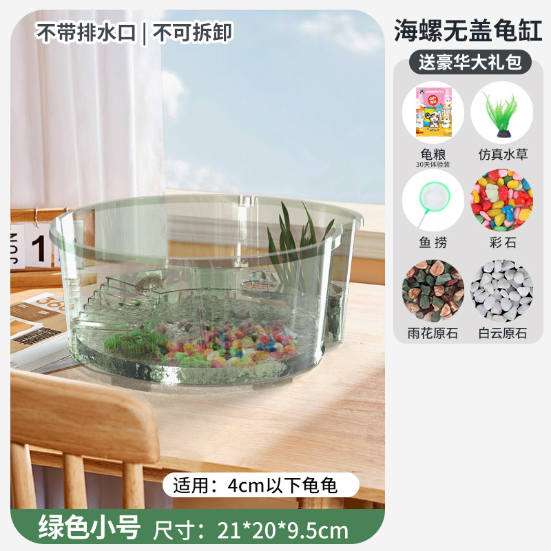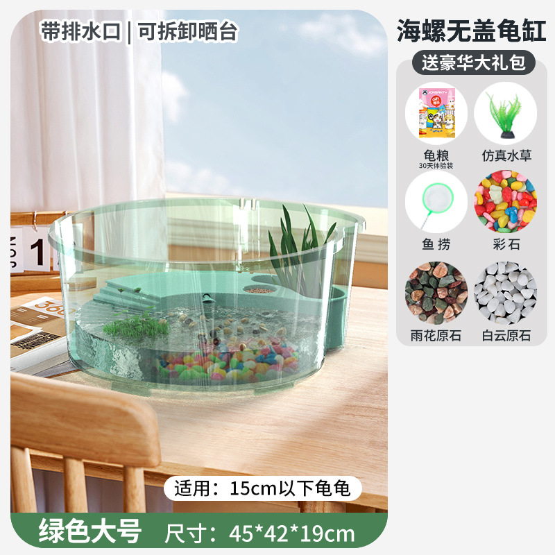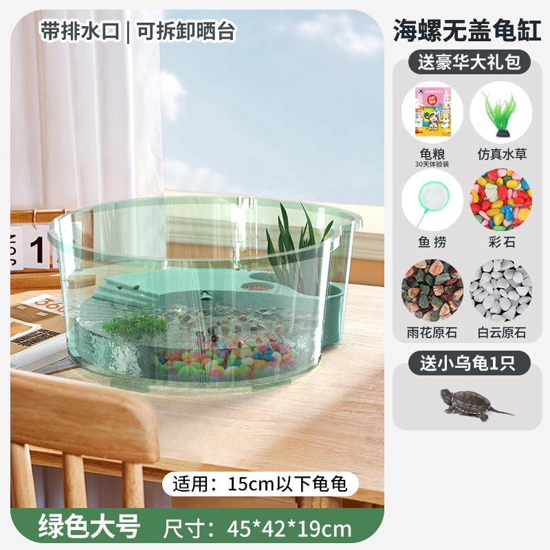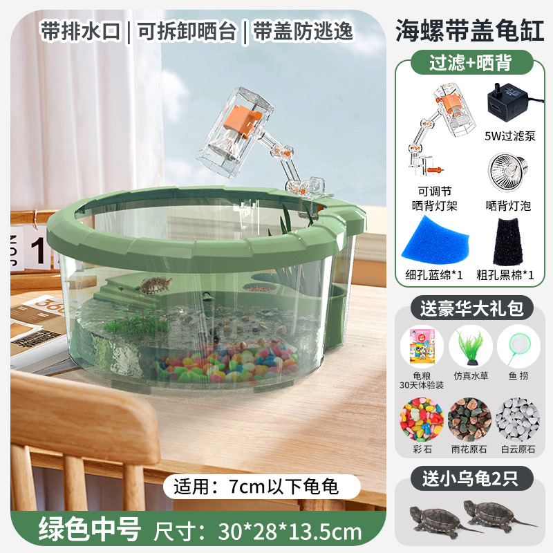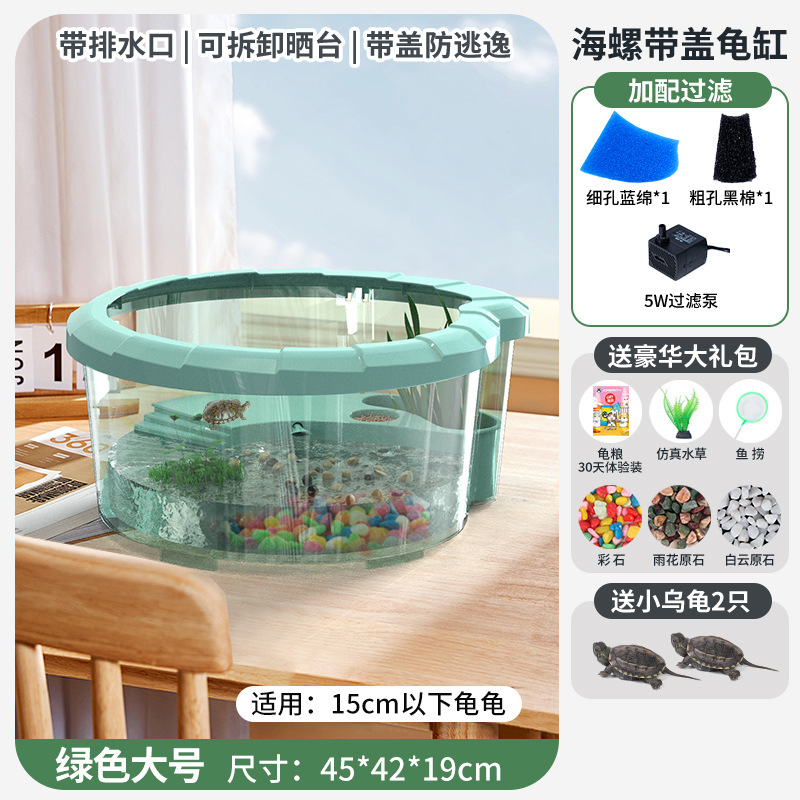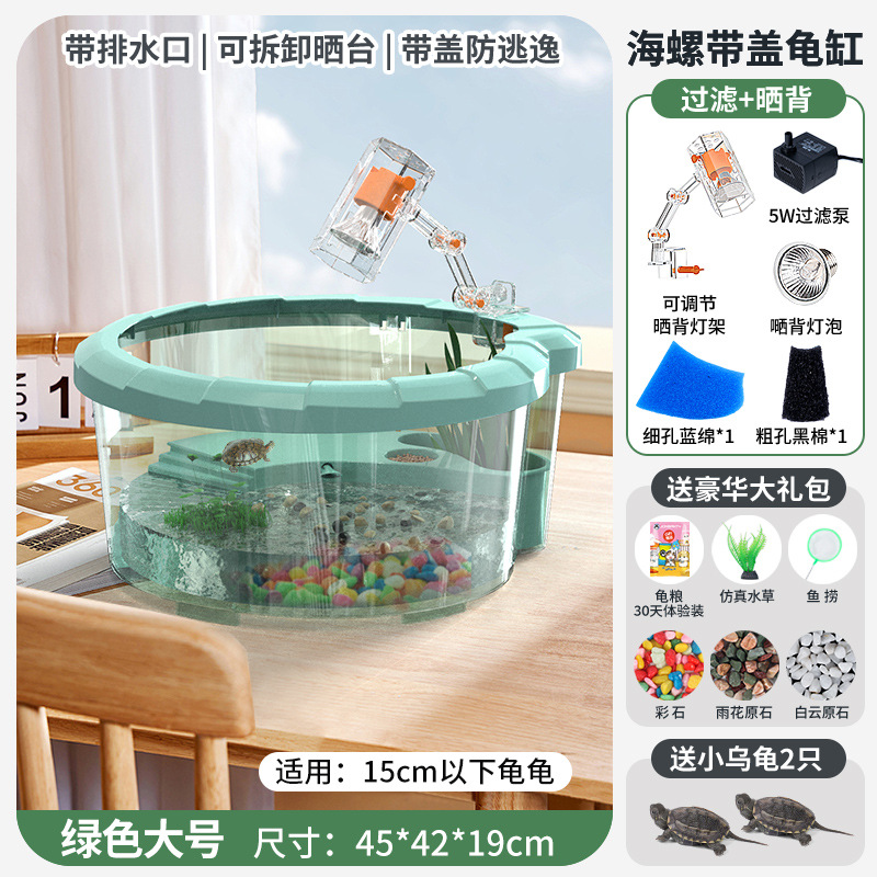 • [무료 꼬마 거북이] 대형 녹색 [업그레이드 커버 + 탈출 방지 + 필터 + 태양광 램프] 무료 선물 팩