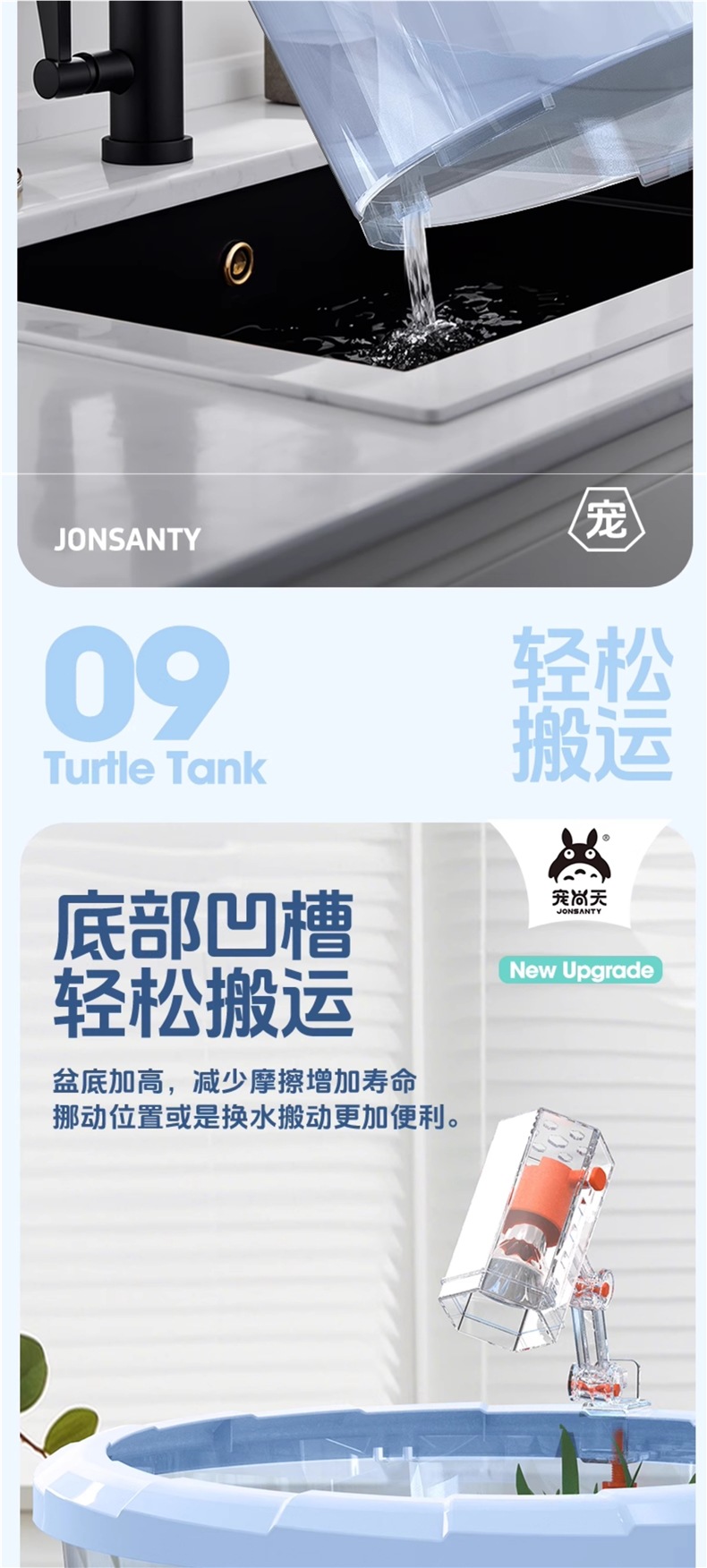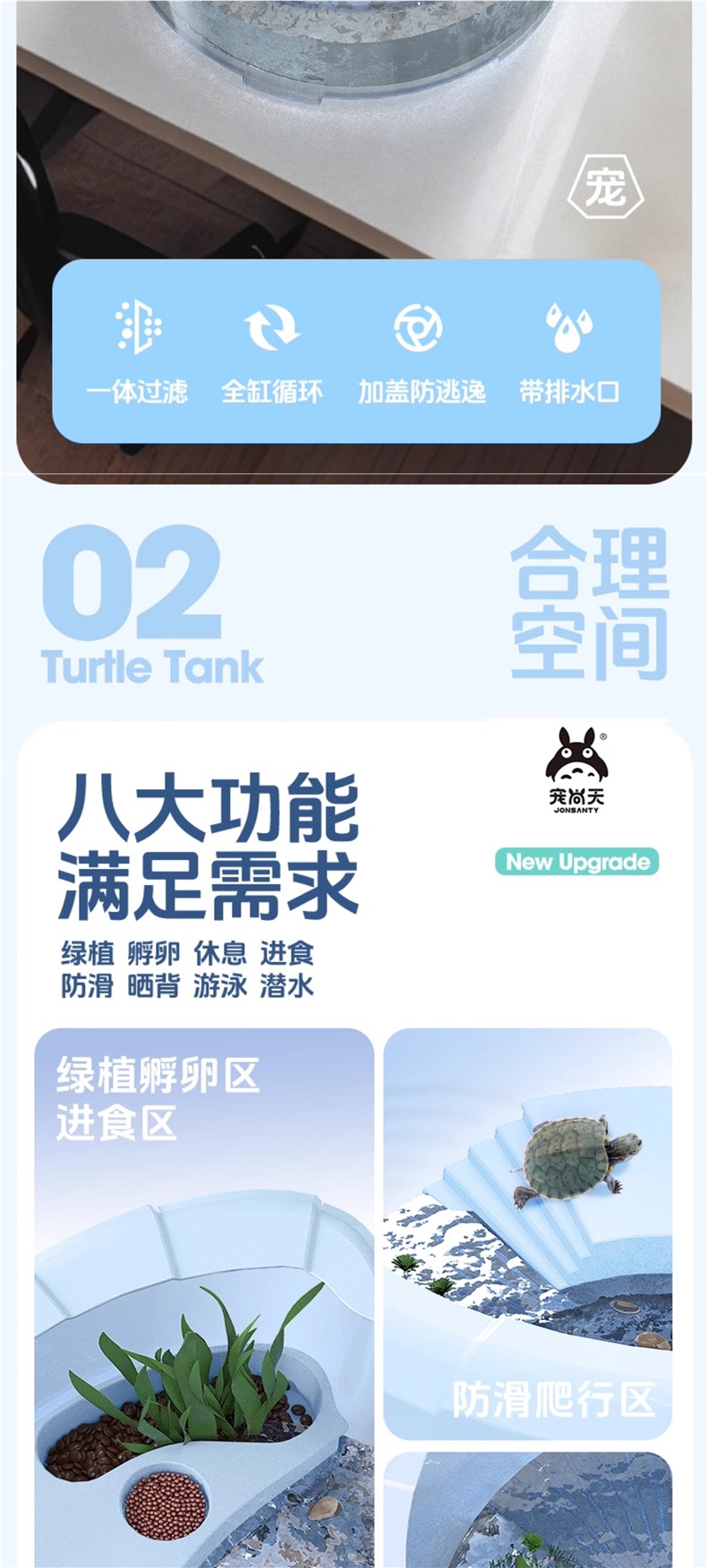 • [무료 꼬마 거북이] 대형 하늘색 [업그레이드 커버 + 탈출 방지 + 필터 + 태양광 램프] 무료 선물 팩