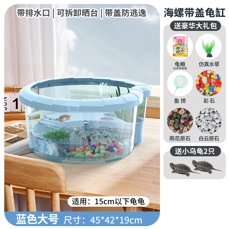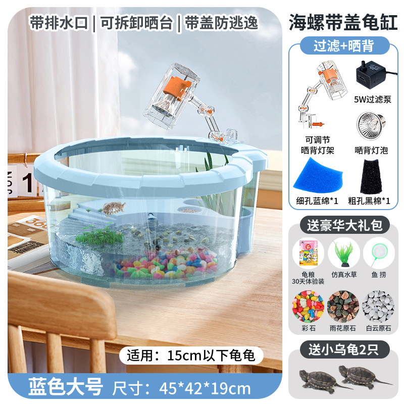 • 미디엄 라이트 블루 [업그레이드 커버, 탈출 방지] [선물 패키지 + 필터 + 태양 램프 + 거북이 2마리]