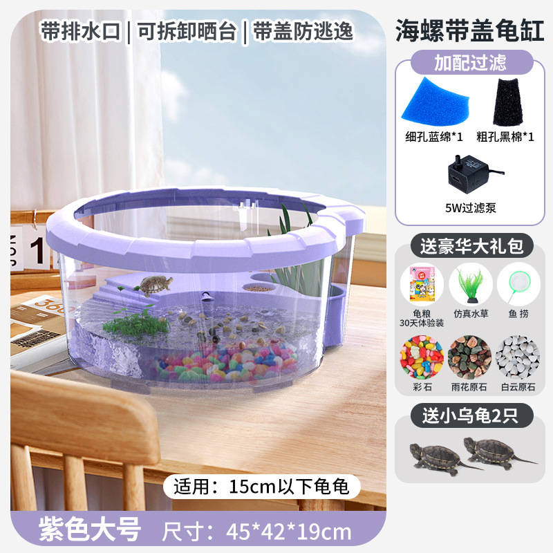 • 대형 보라색 [업그레이드 커버, 탈출 방지] [선물 패키지 + 필터 + 태양 램프 + 거북이 2마리]