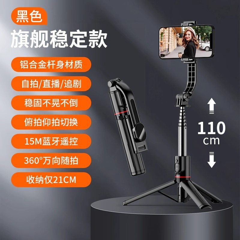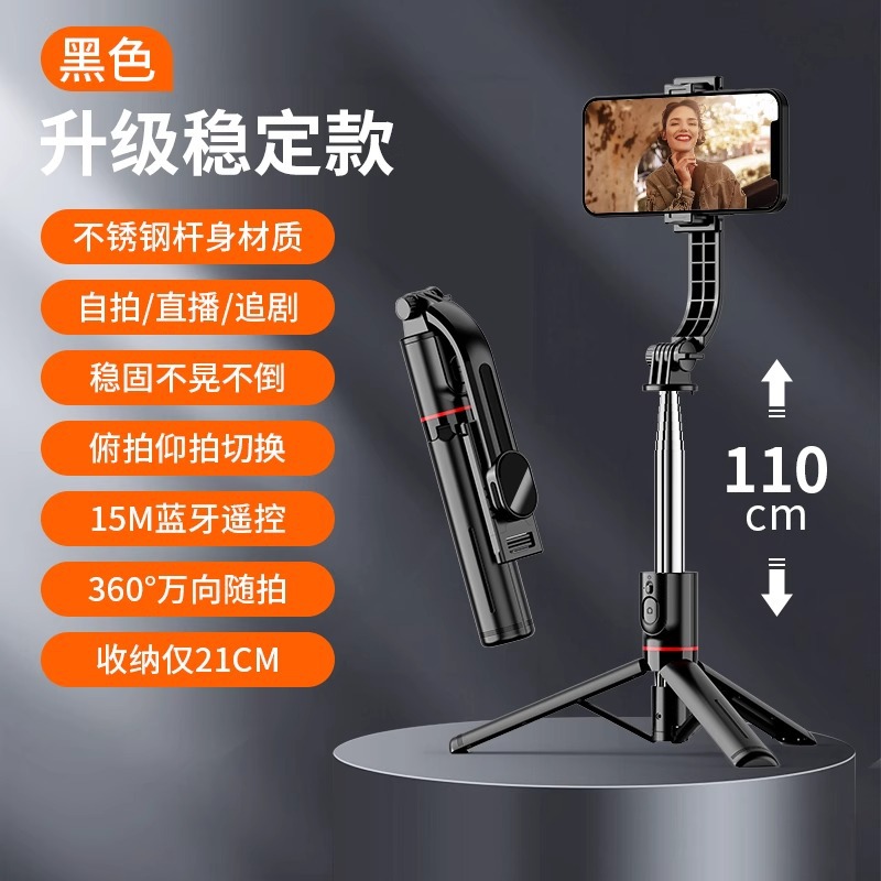 • 블랙 [L13- 1.1m ] 스테인레스 스틸 샤프트 + 삼각대 + 블루투스 리모콘
