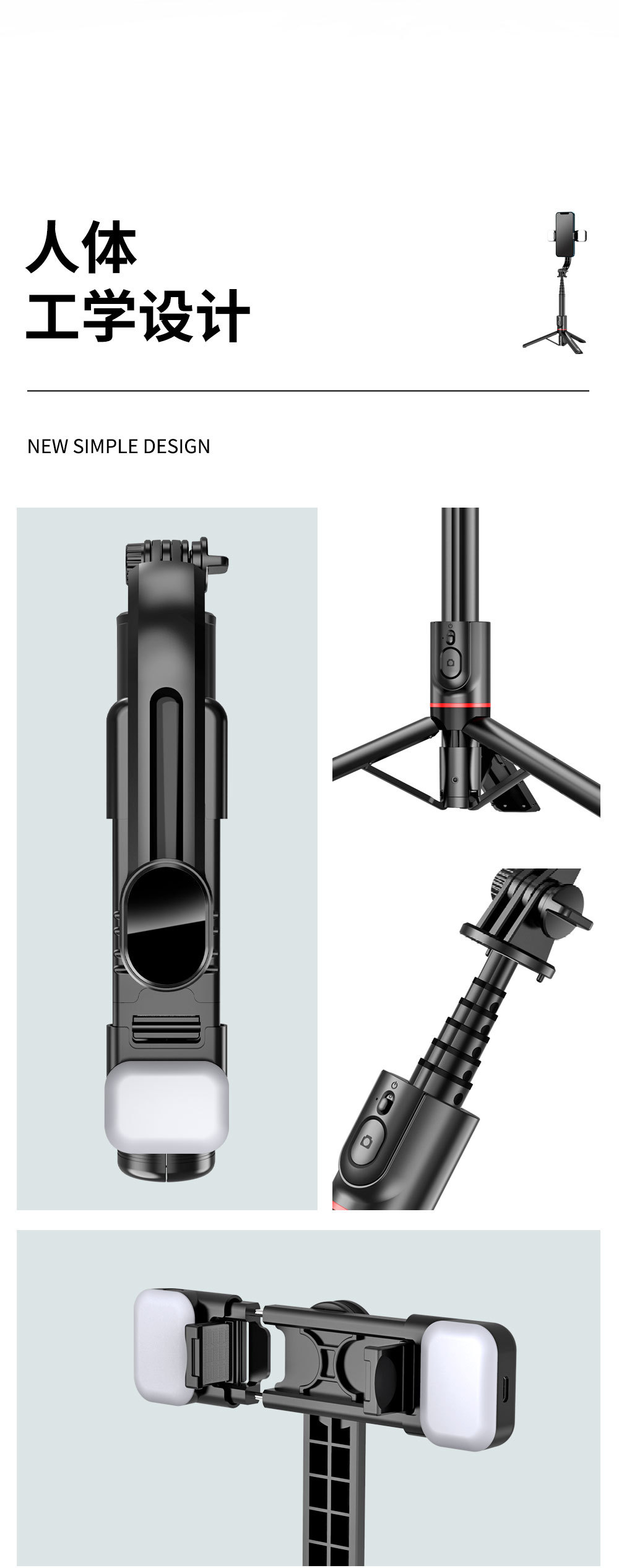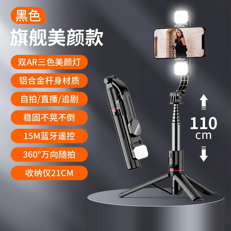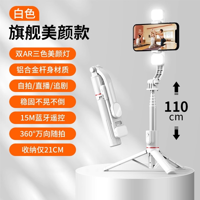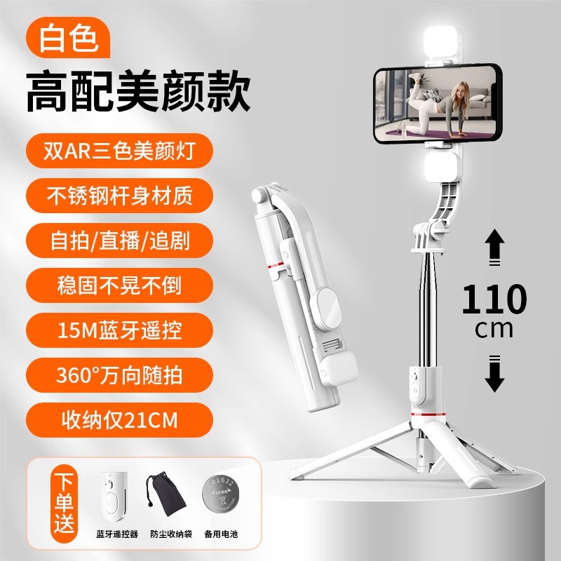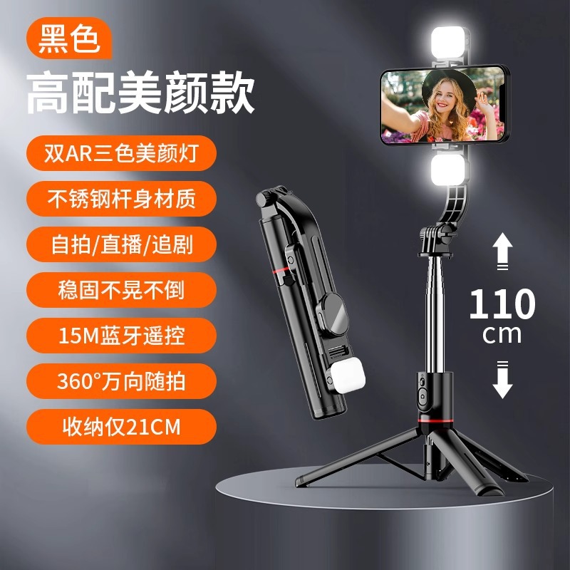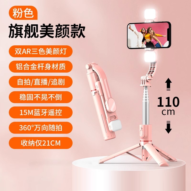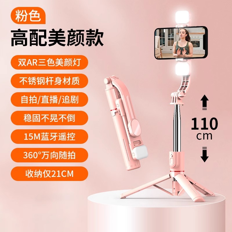 Douyin의 동일한 셀카봉, 휴대폰 홀더, 여행용 휴대용 보조광, 블루투스 사진 유물, 3-in-1 삼각대