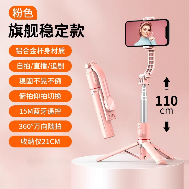 • 핑크 [L13- 1.1m ] 스테인레스 스틸 샤프트 + 삼각대 + 블루투스 리모콘