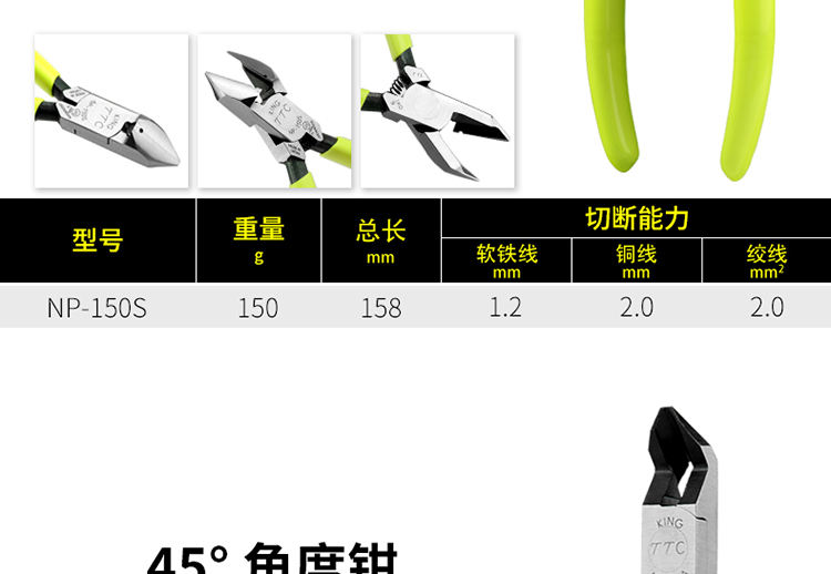 일본 수입 TTC 앵글 노즐 펜치 직각 플라스틱 커터 45도 곡선 노즐 플라스틱 펜치 90도 AN-150A