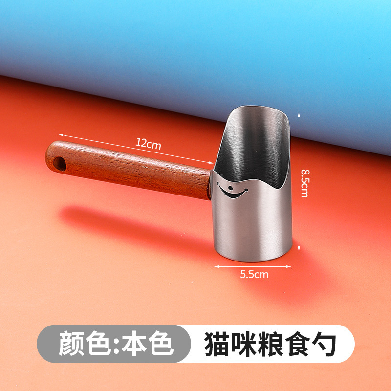 새로운 시장 인기 애완 동물 제품 고양이 특수 스테인레스 스틸 고양이 사료 스푼 나무 손잡이 측정 컵 개 사료 스푼