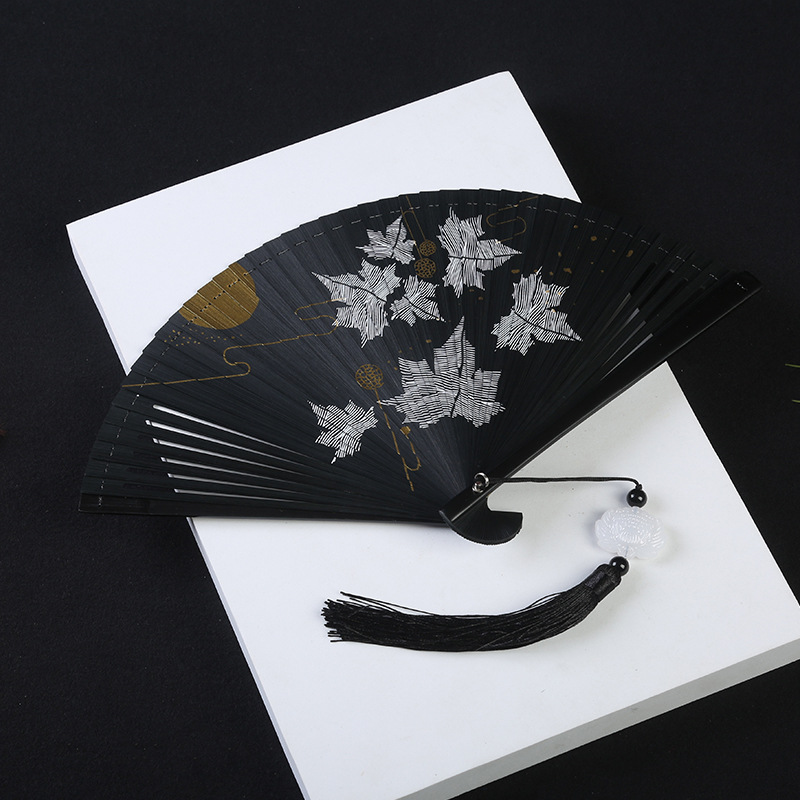 전체 대나무 본체 부채, 중국 스타일 여성 수제 일본식 골동품 접이식 Hanfu 댄스 부채, 휴대용