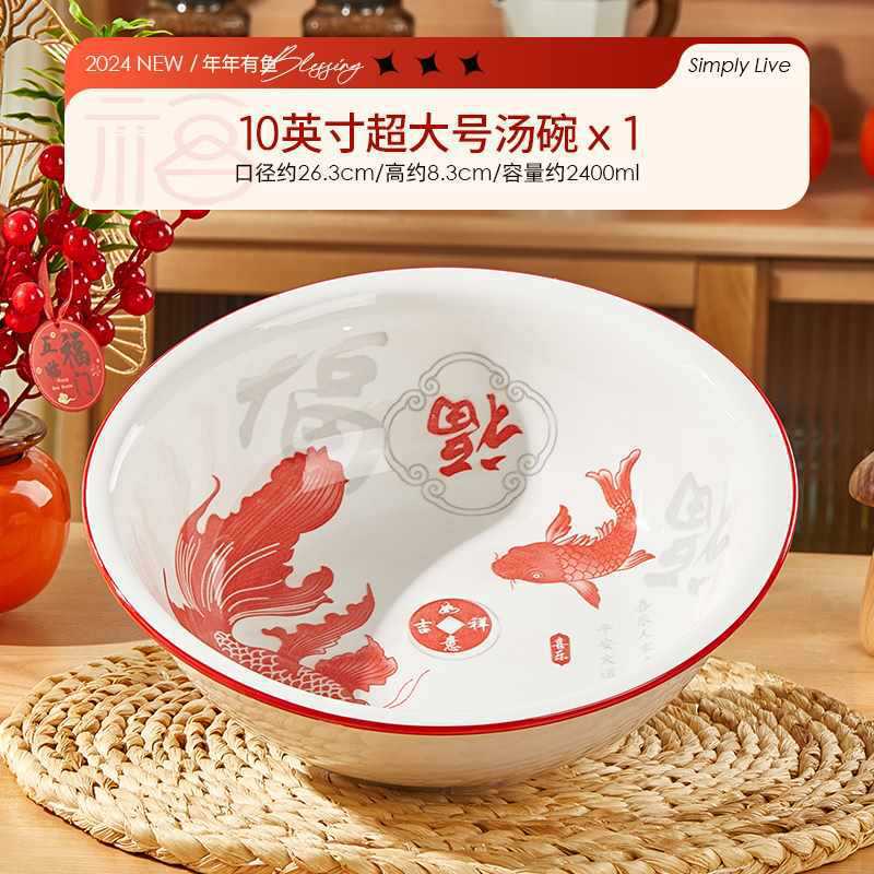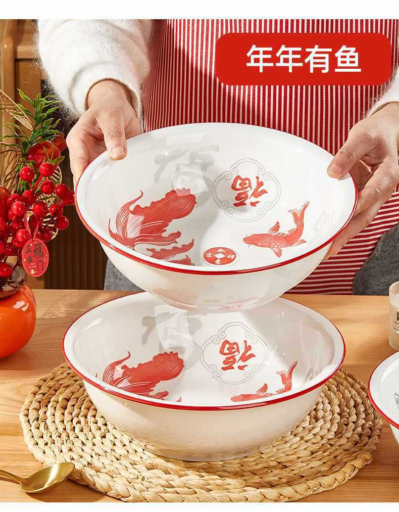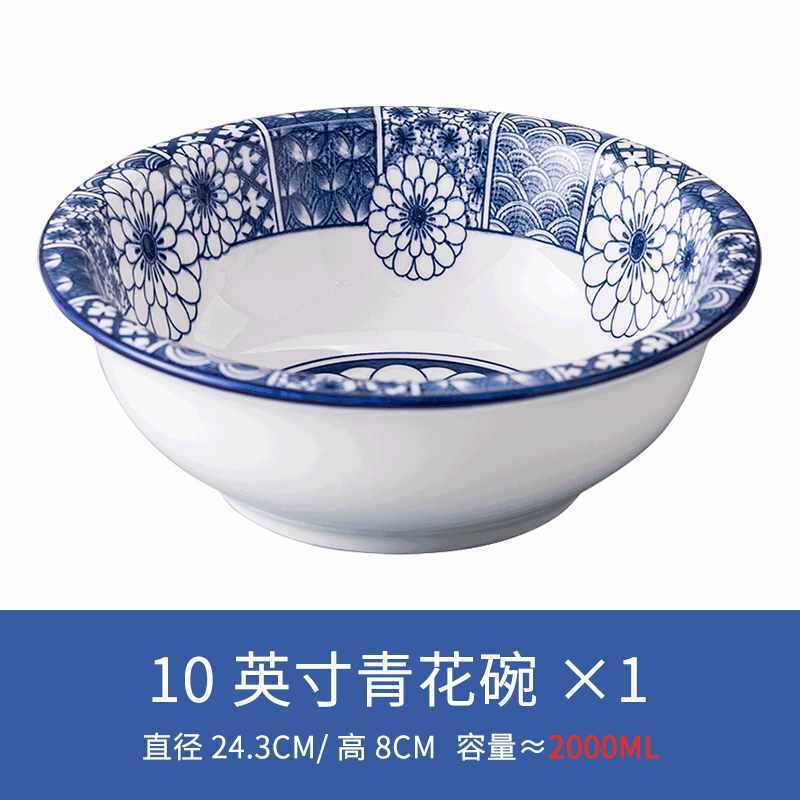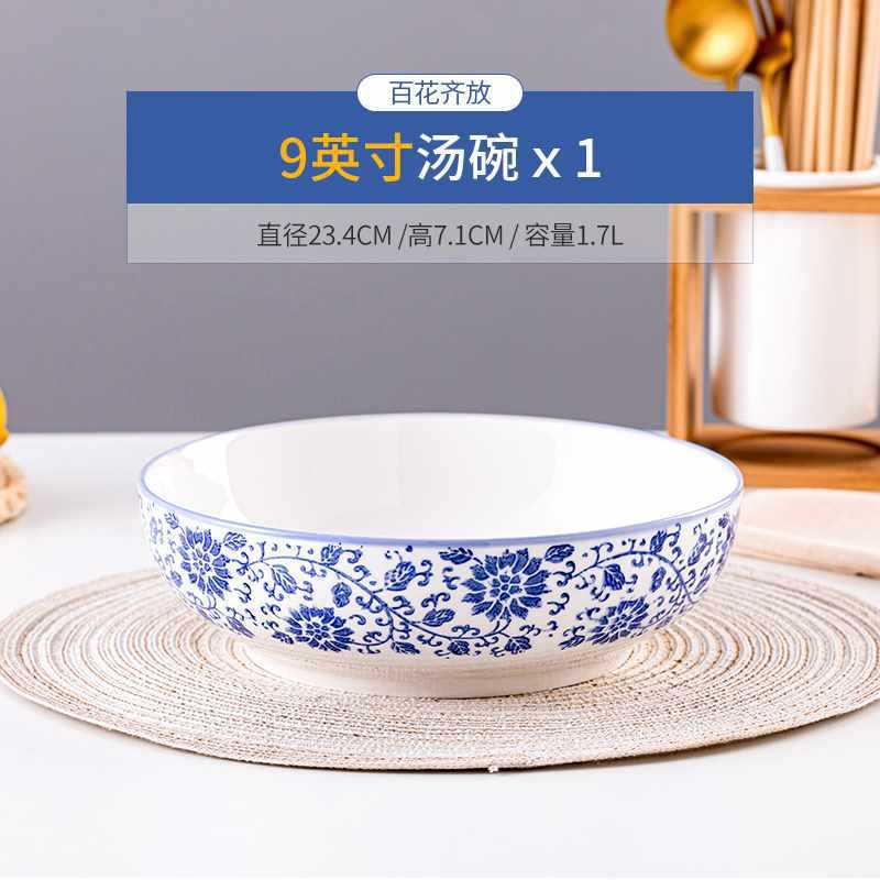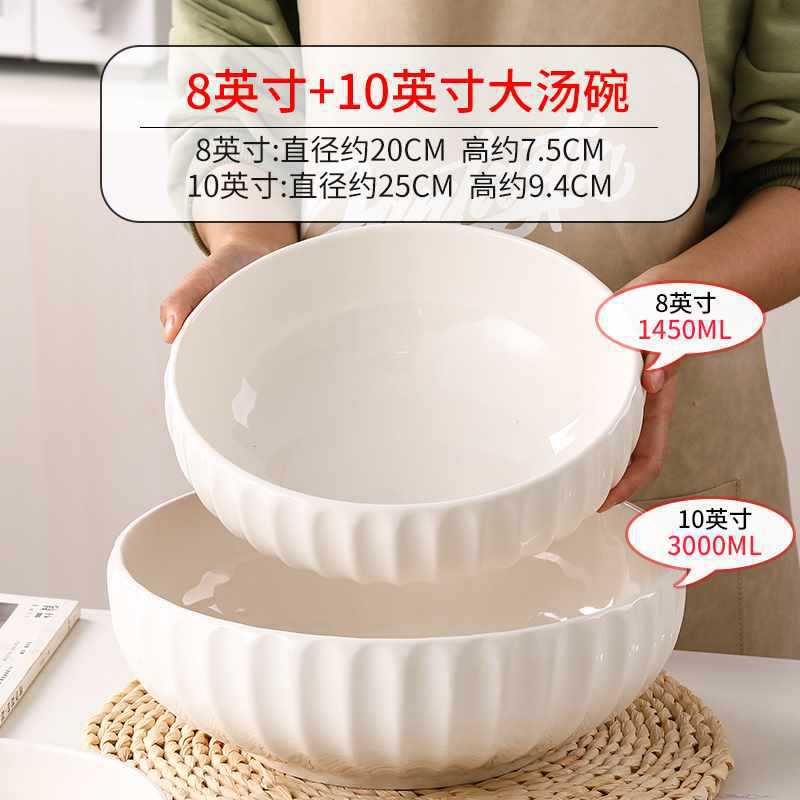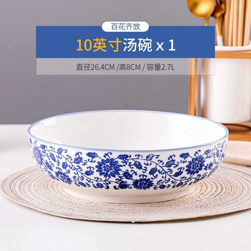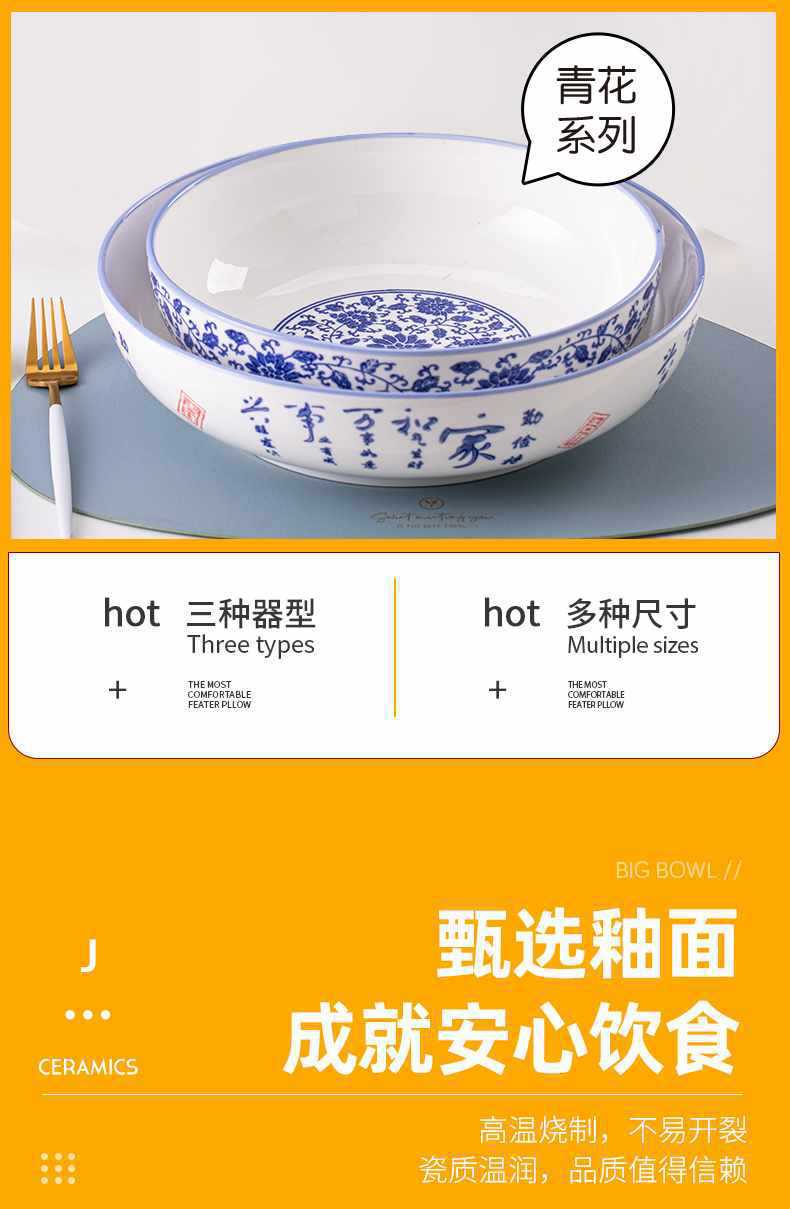 수프 그릇 가정용 순수한 흰색 세라믹 그릇 초대형 피클 생선 파란색과 흰색 수프 그릇 유약 컬러 대형 그릇 대형 도자기 수프 그릇스토어 가기