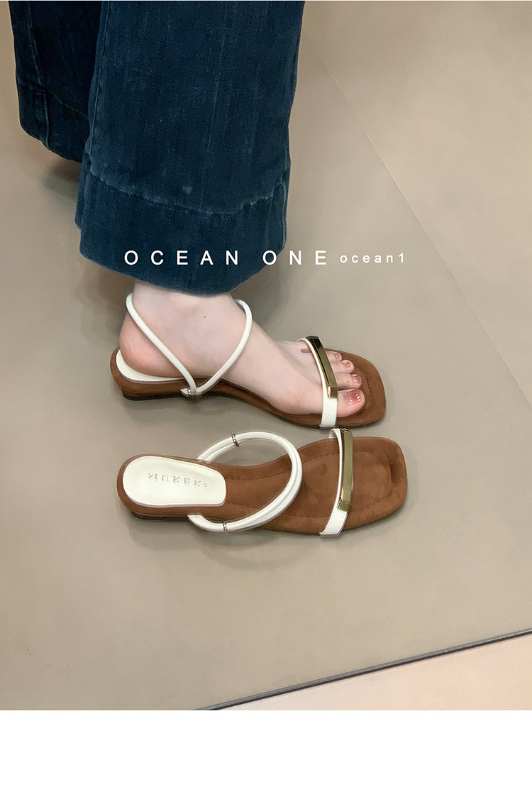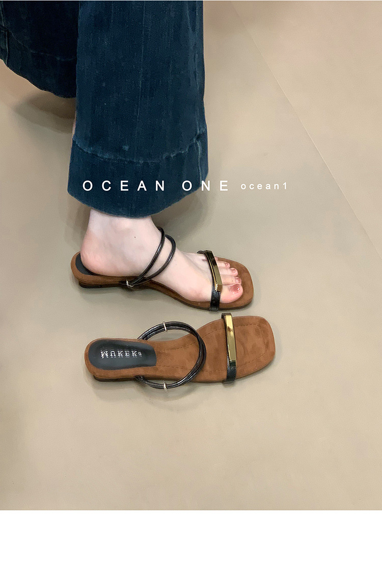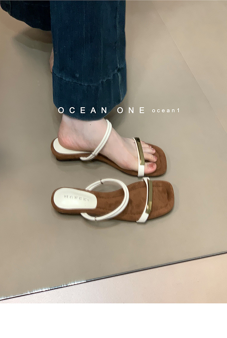 MUKEKe 한국식 솔리드 컬러 슬립온 2025 여름 신작 여름 스타일 로우힐 투웨어 슬립온 샌들스토어 가기