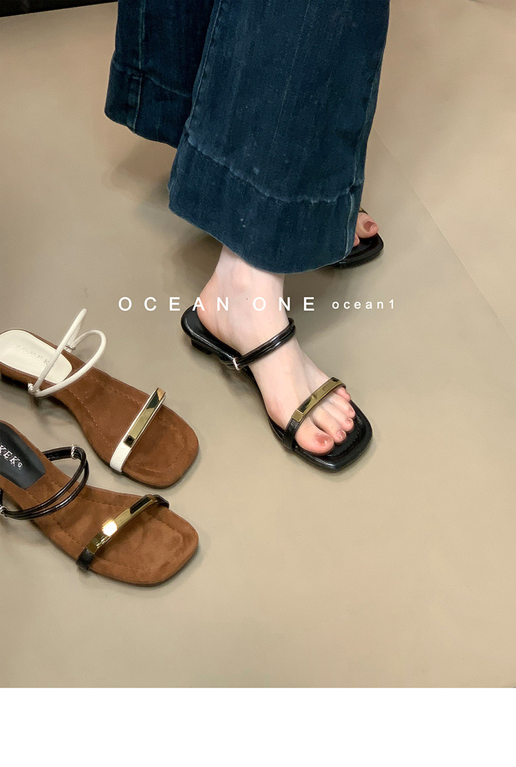 MUKEKe 한국식 솔리드 컬러 슬립온 2025 여름 신작 여름 스타일 로우힐 투웨어 슬립온 샌들