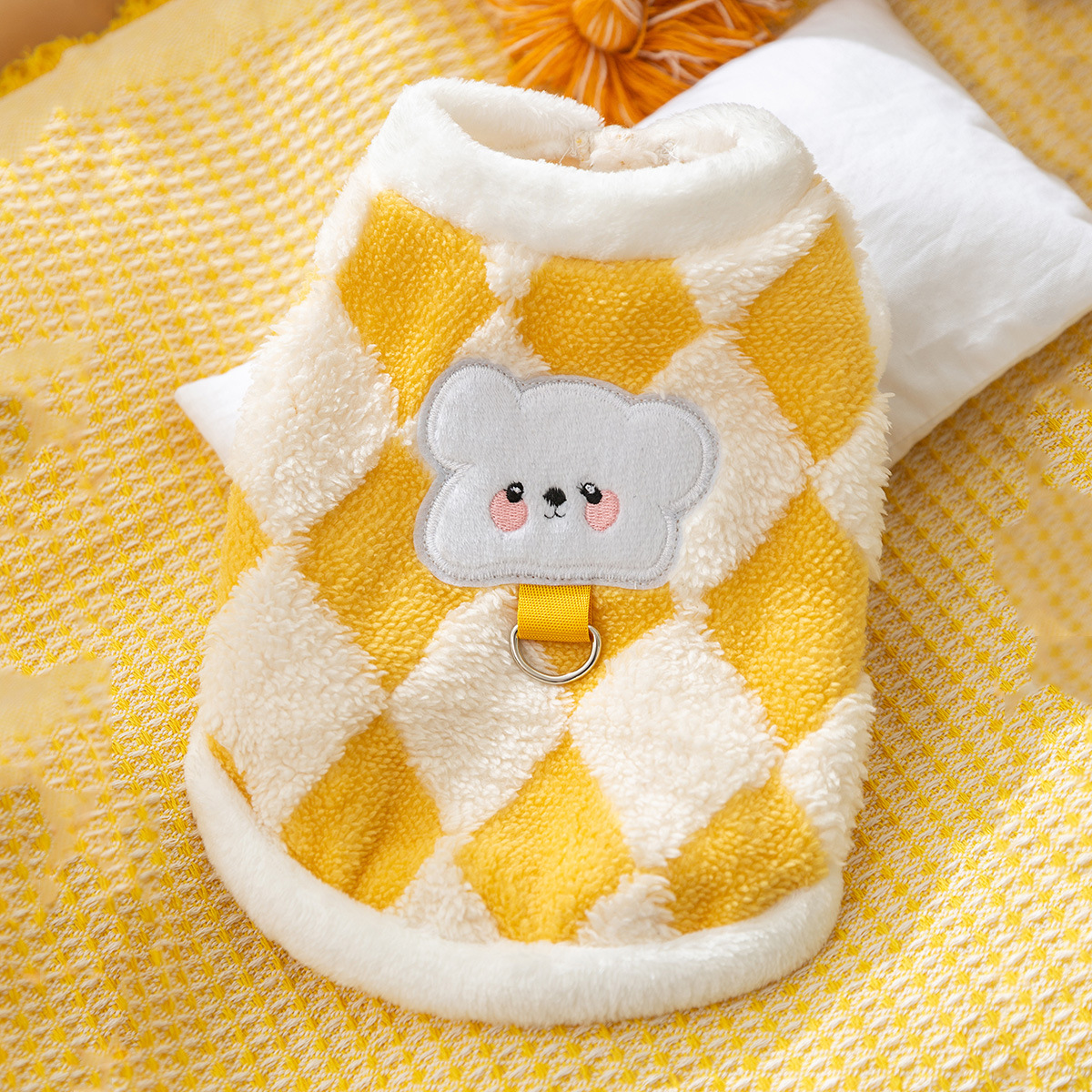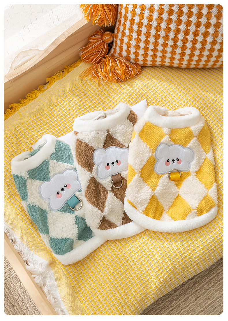 가을, 겨울 개 귀여운 만화 마름모 패치 곰 견인 양털 따뜻한 중소형 개 애완 동물 옷