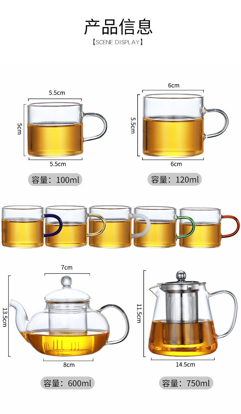 유리 작은 찻잔 쿵푸 차 세트 내열성 두꺼운 가정용 투명 마시는 컵 6피스 세트 차 만들기 국가스토어 가기