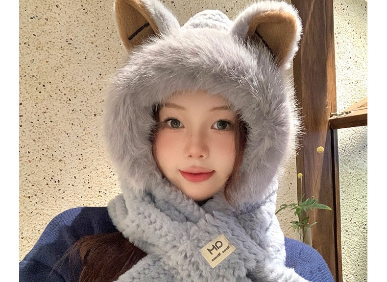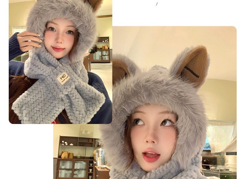 귀여운 여우 귀 플러시 모자와 스카프 올인원 여성용 겨울 귀 보호 따뜻한 모자 학생 스카프 추위와 바람으로부터 보호