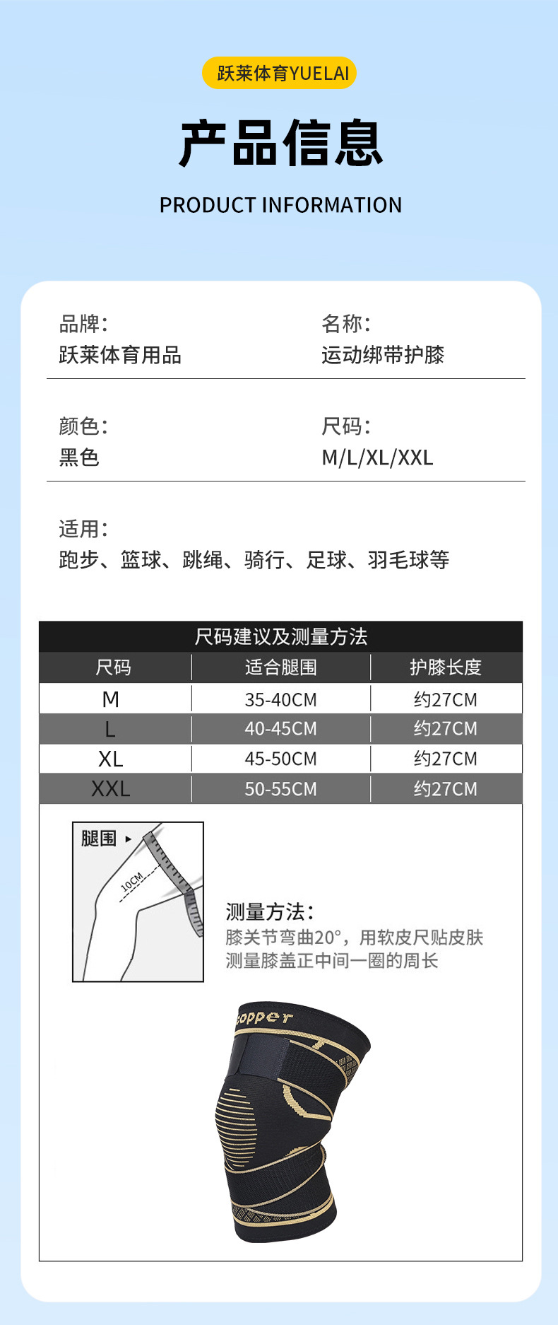 도매 구리 이온 무릎 패드 링 가압 스트랩 스포츠 무릎 패드 사이클링 등산 농구 통기성 무릎 패드
