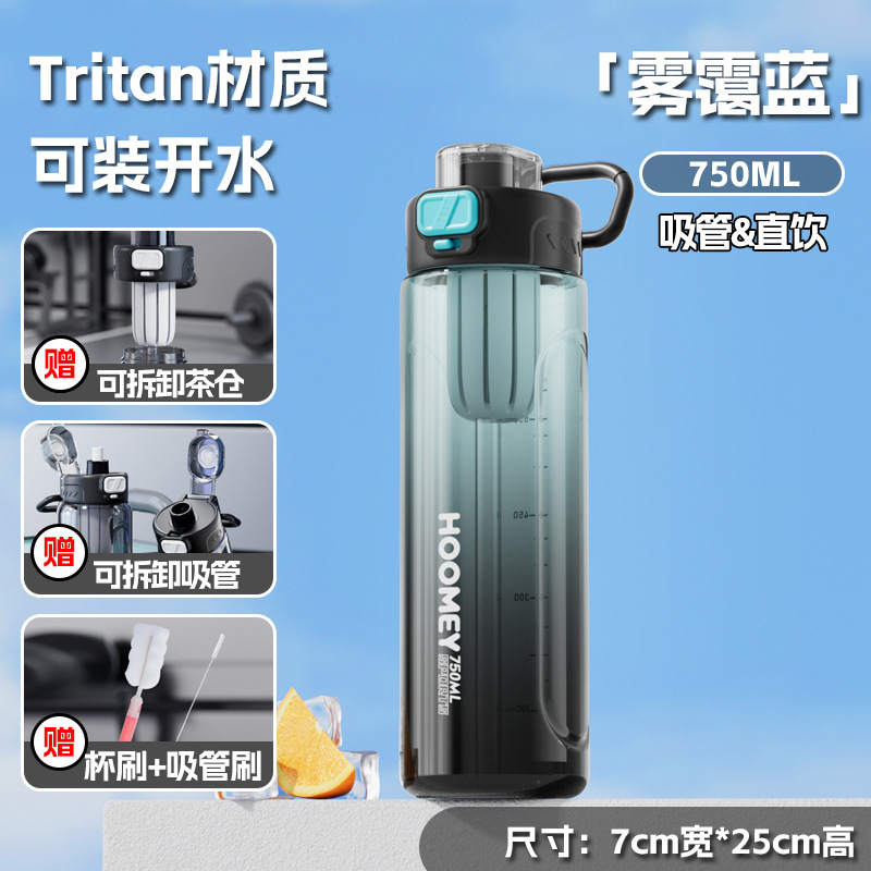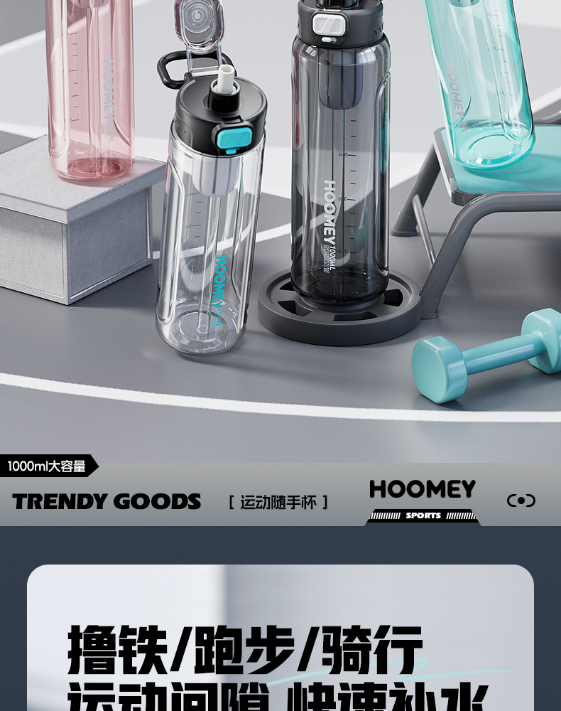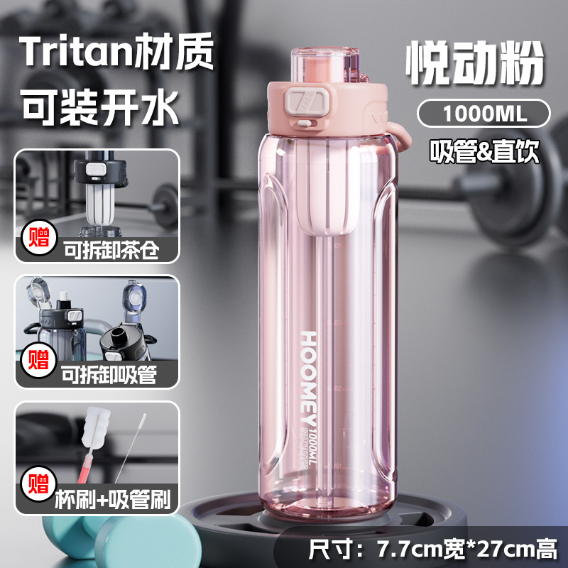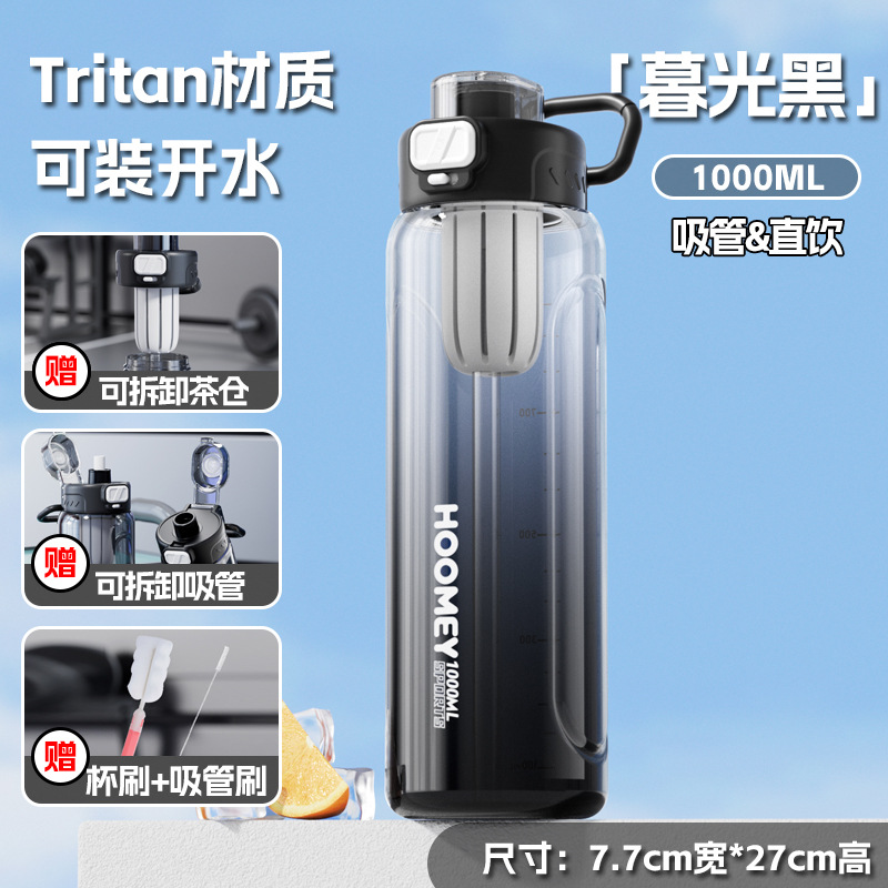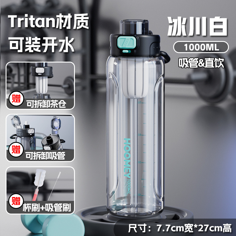트라이탄 대용량 스포츠 물병 1000ml 이중 빨대컵 남녀 학생 피트니스 야외 휴대용 물통