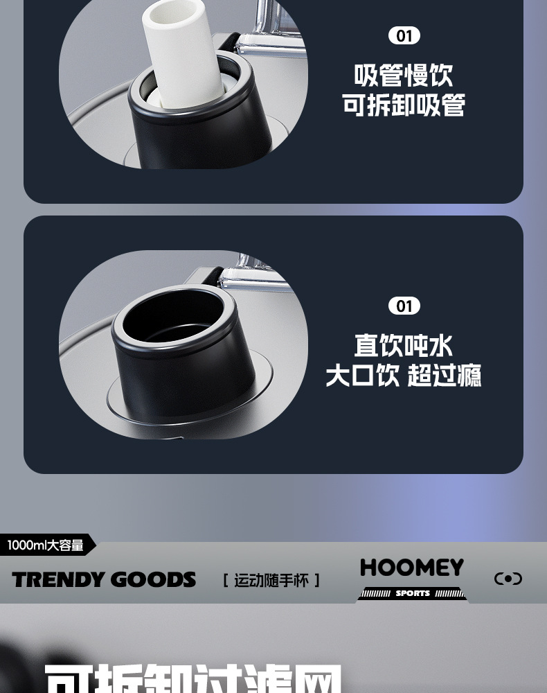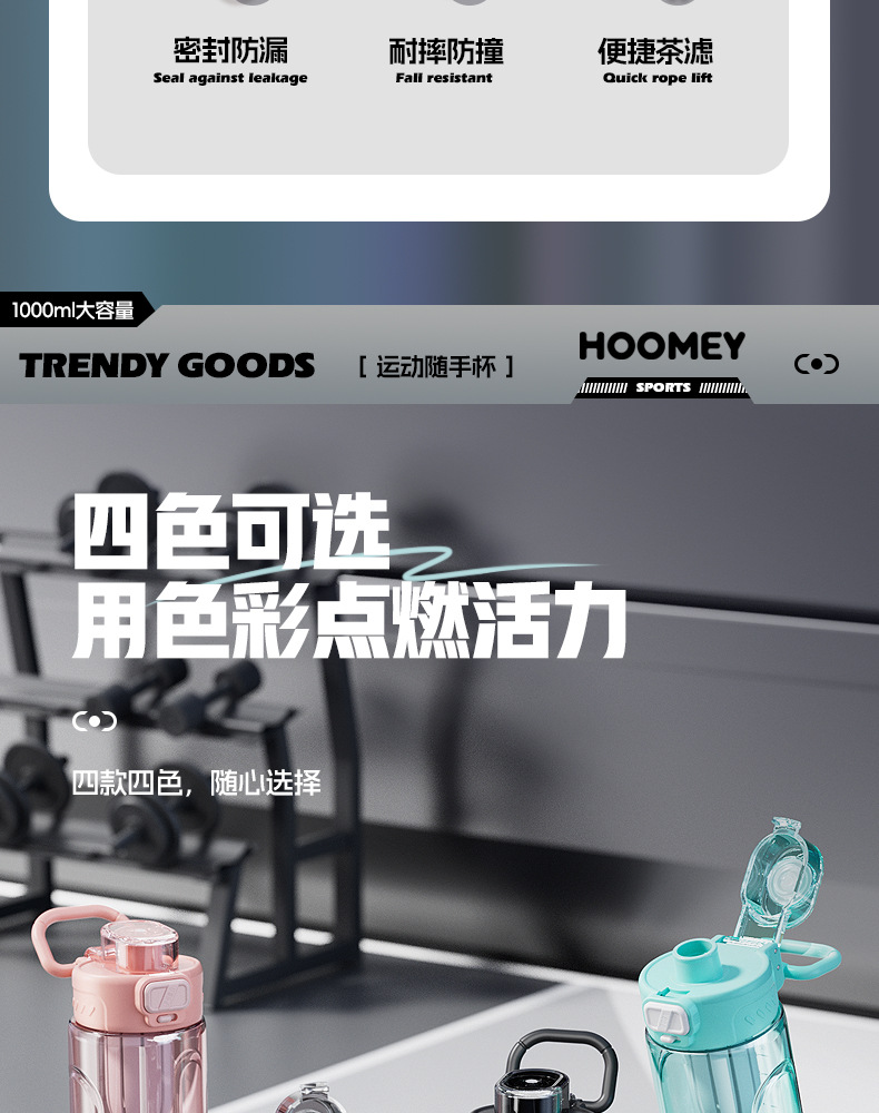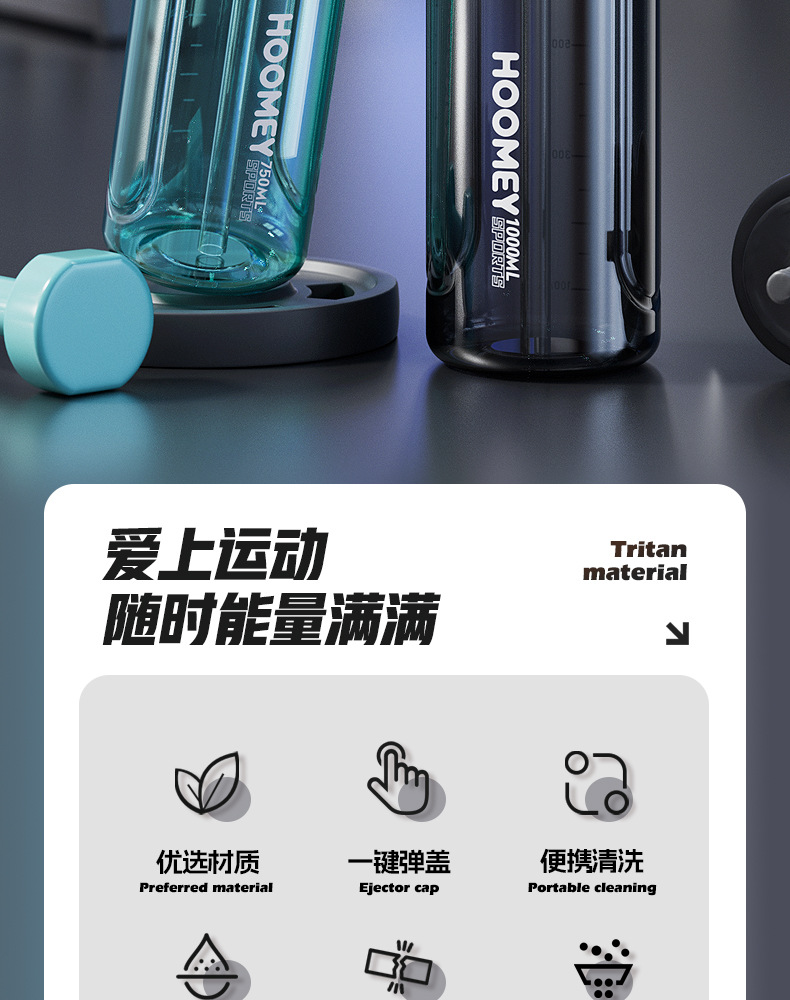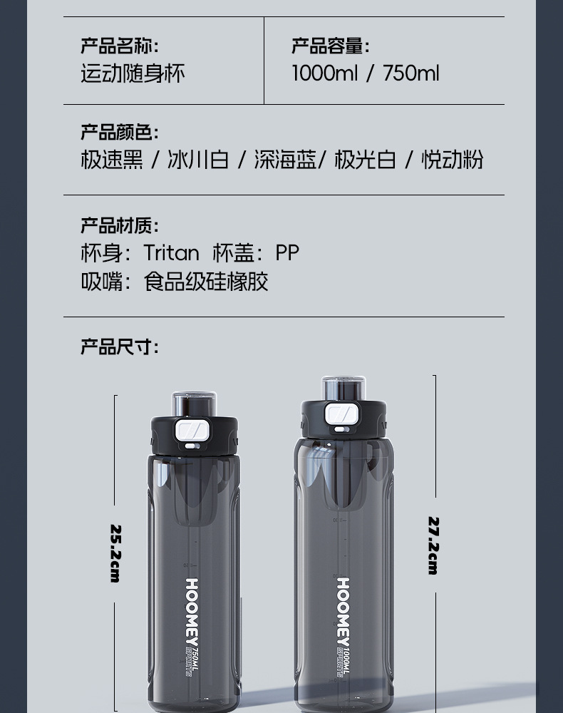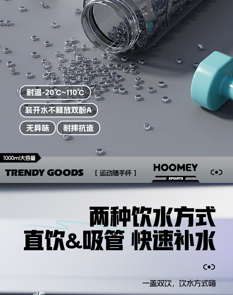 트라이탄 대용량 스포츠 물병 1000ml 이중 빨대컵 남녀 학생 피트니스 야외 휴대용 물통