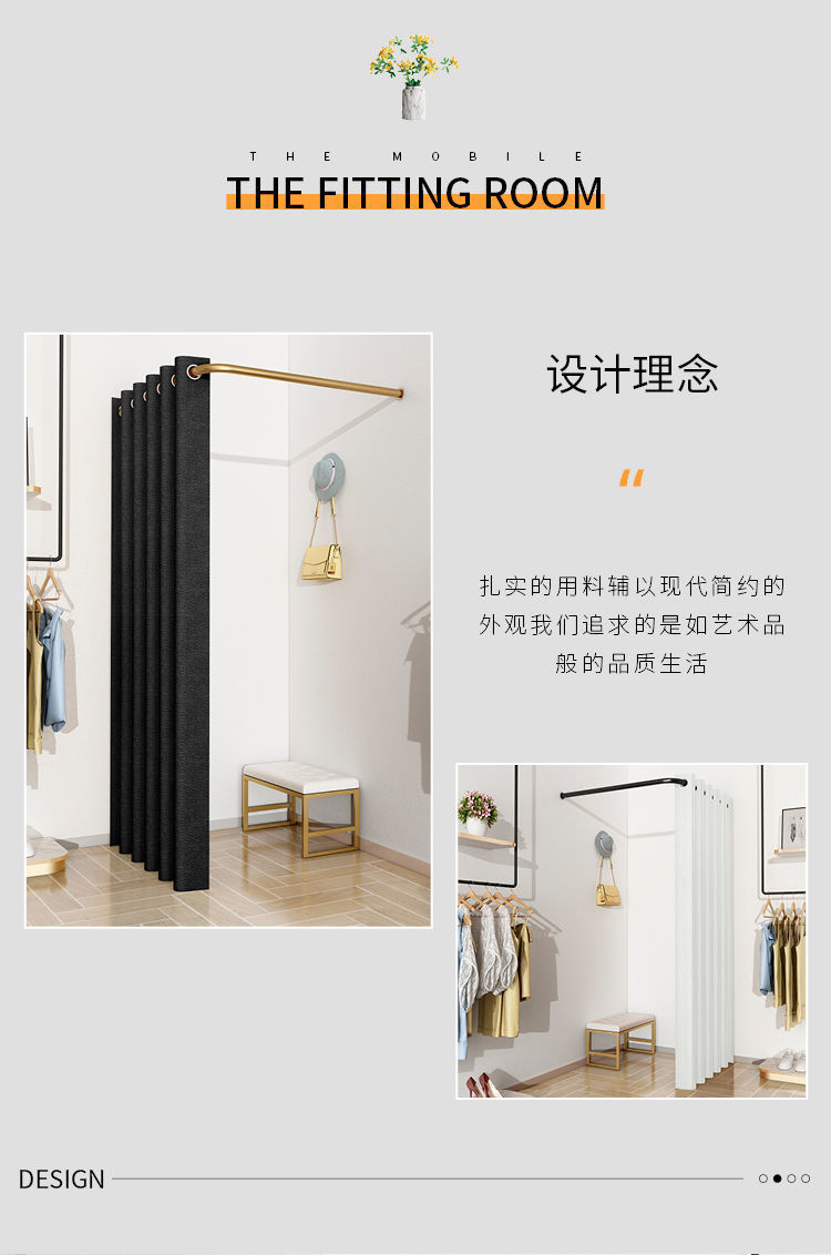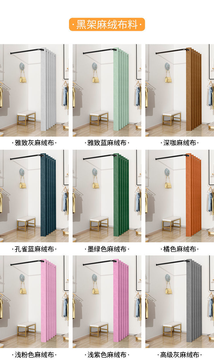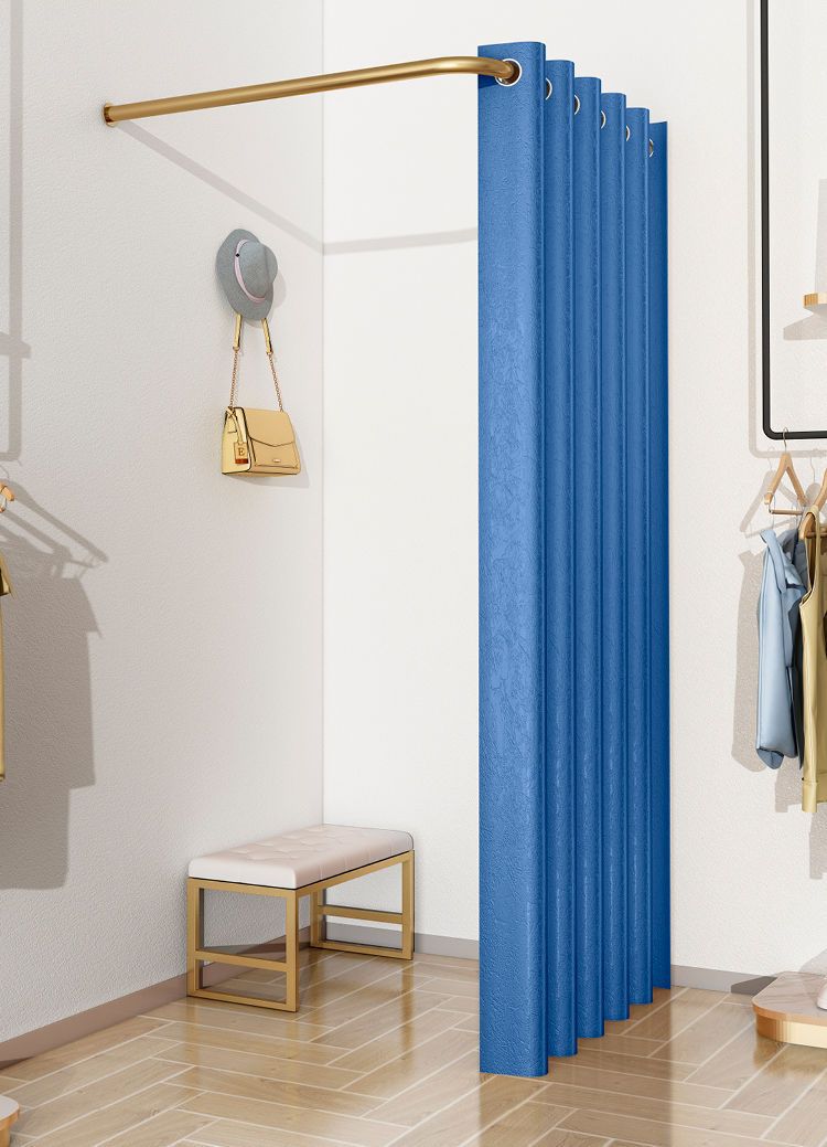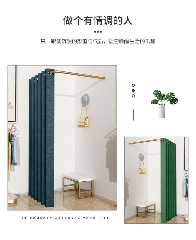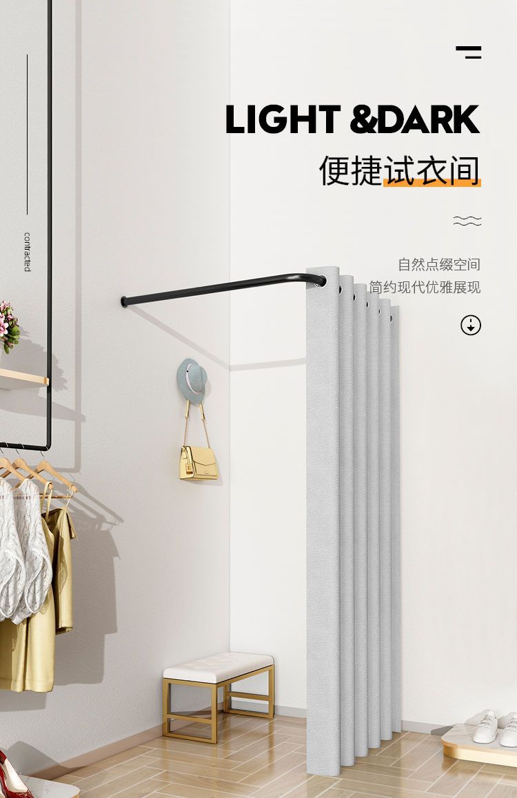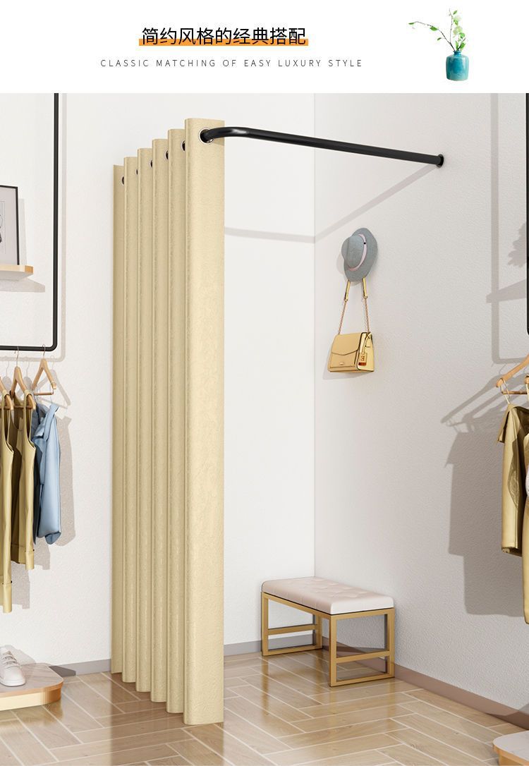 의류 매장 디스플레이 랙 간단한 피팅 룸 도어 커튼 휴대용 탈의실 L자형 벽 트랙 파티션 커튼 Tangxin스토어 가기