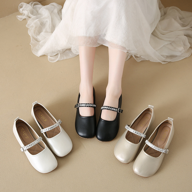 Xiaoxiangfeng 라인스톤 펌프스 메리 제인 여성용 신발 2025 새로운 스타일 아름다운 스커트 플랫 소형 가죽 신발스토어 가기