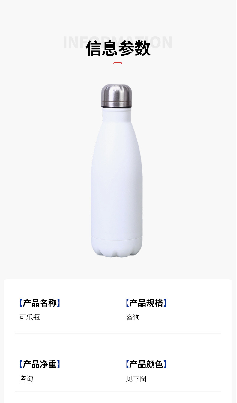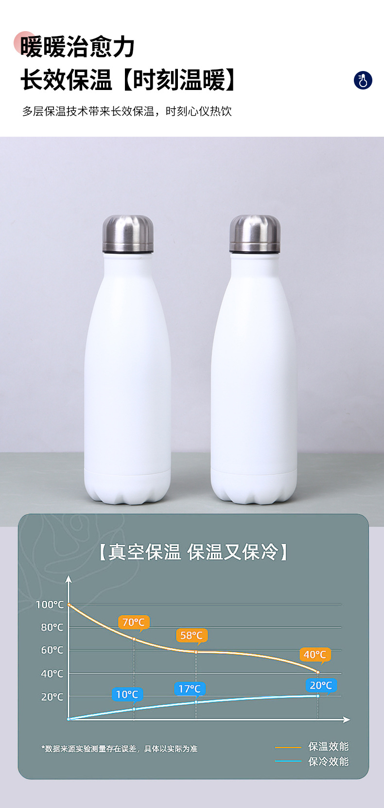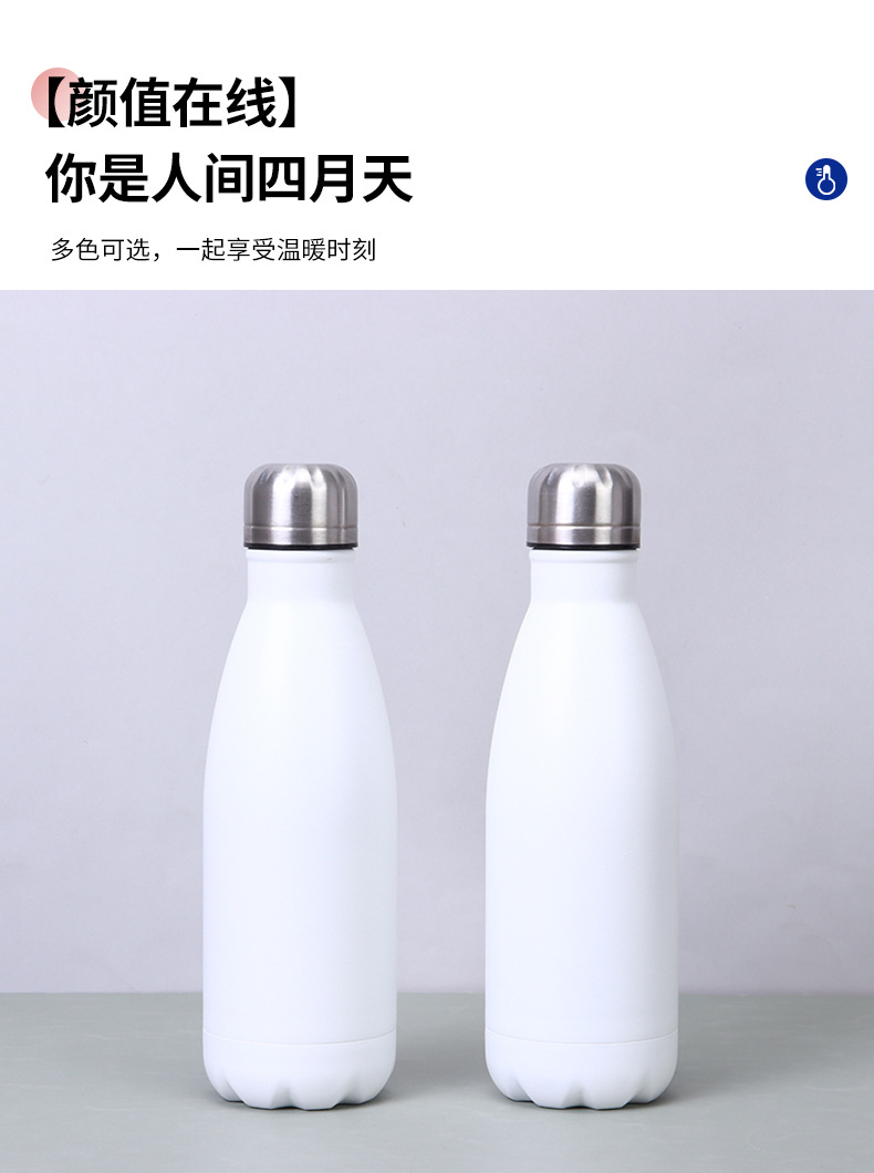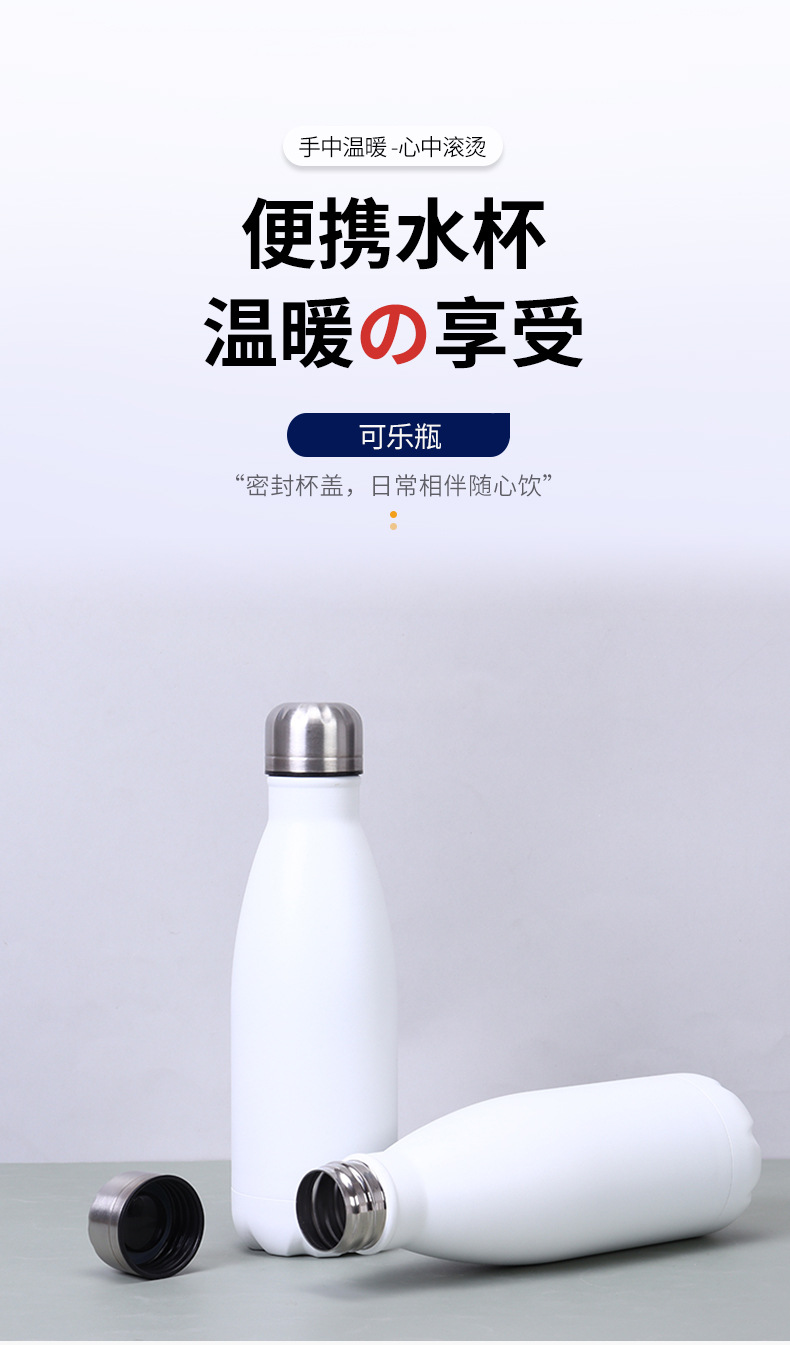제조 업체 도매 선물 로고 보온병 컵 유행 스포츠 물병 304 스테인레스 스틸 크리 에이 티브 화이트 콜라 병