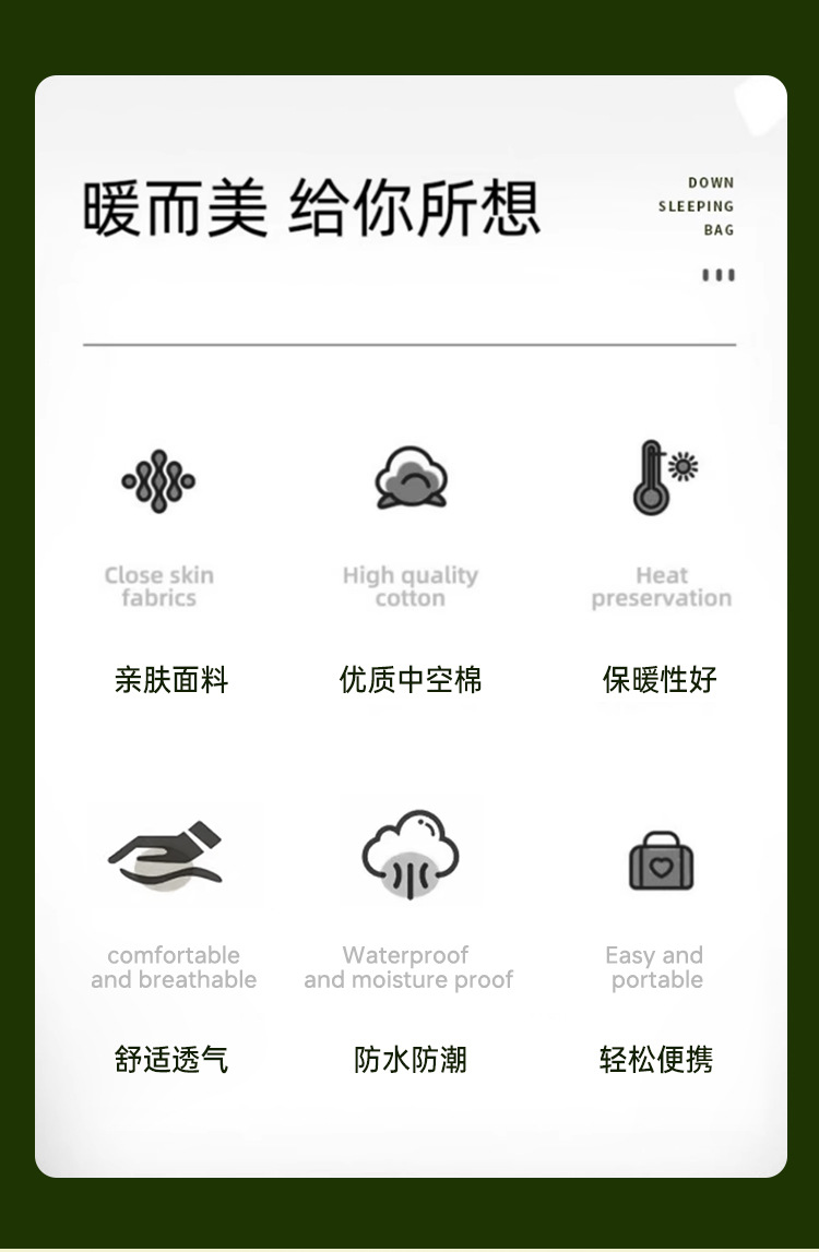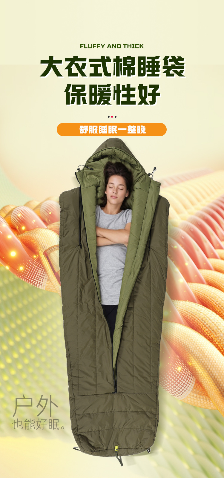 친환경 야외 캠핑 비상 코트형 침낭, 방풍, 방습, 방한 겨울 두꺼운 단열 엄마 침낭스토어 가기