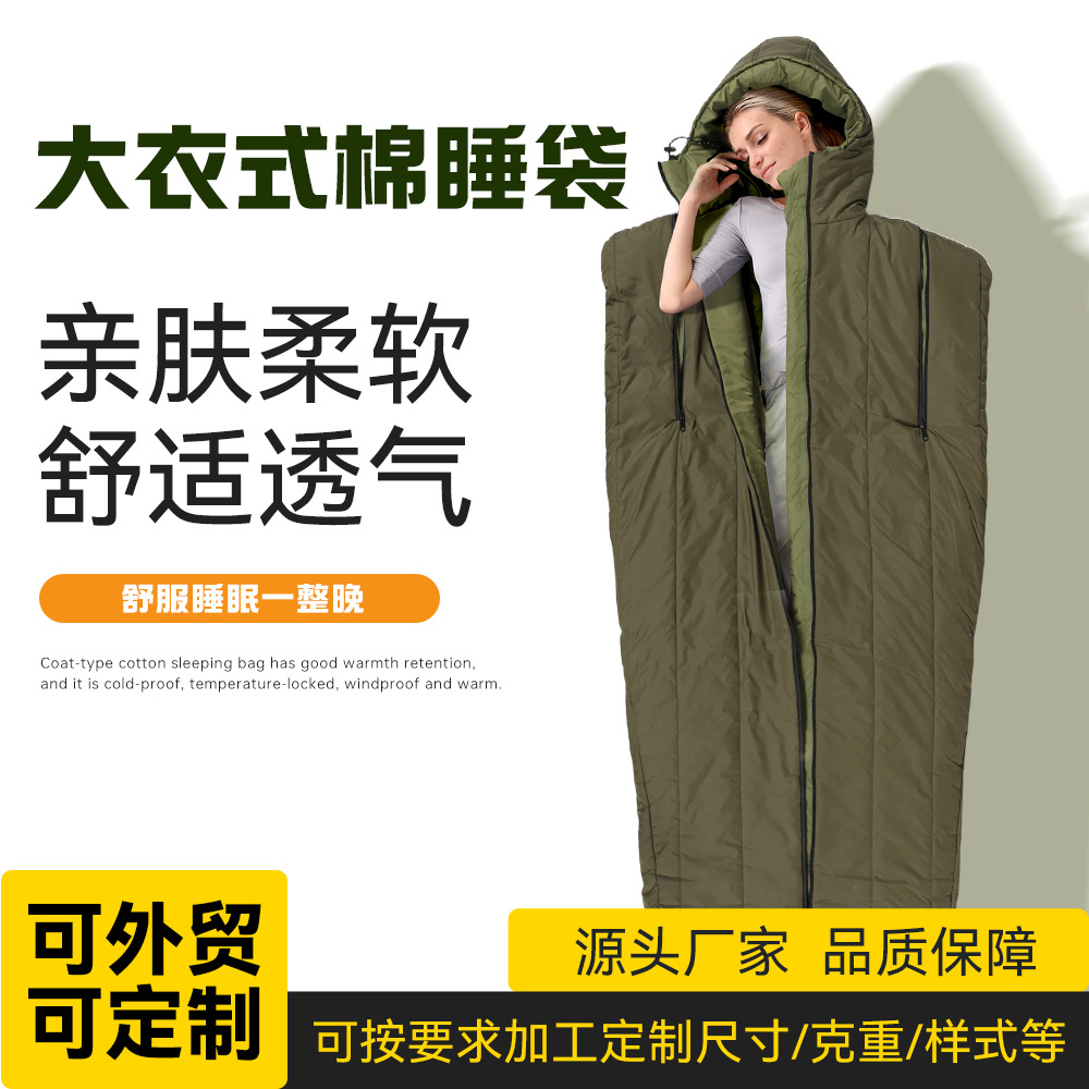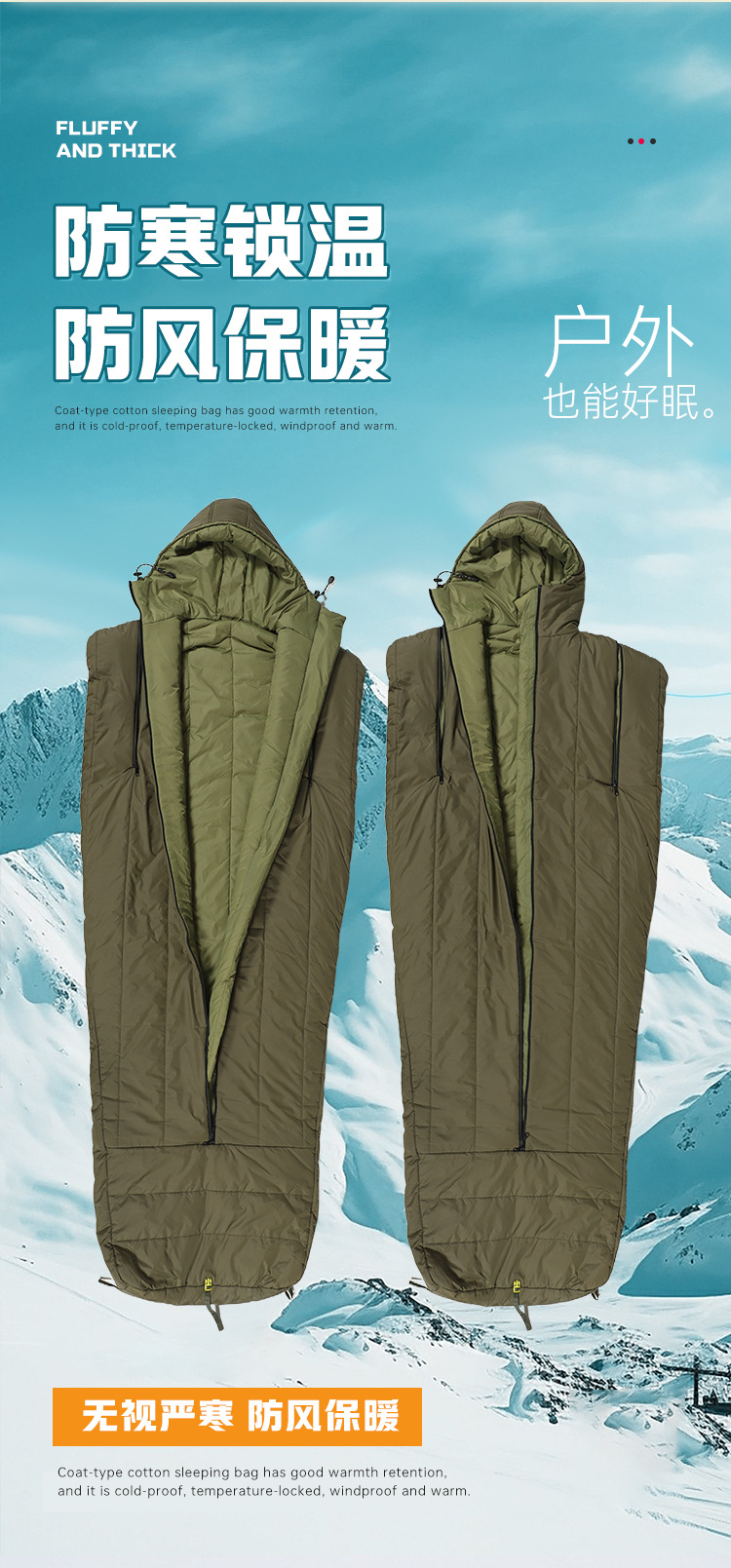 친환경 야외 캠핑 비상 코트형 침낭, 방풍, 방습, 방한 겨울 두꺼운 단열 엄마 침낭