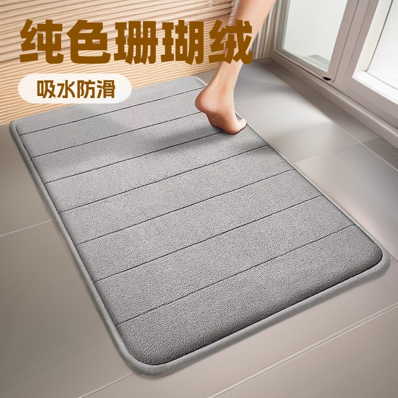 크로스보더 아마존 카펫 단색 코랄벨벳 도어매트 평면 엠보싱 메모리폼 흡수성 발매트스토어 가기