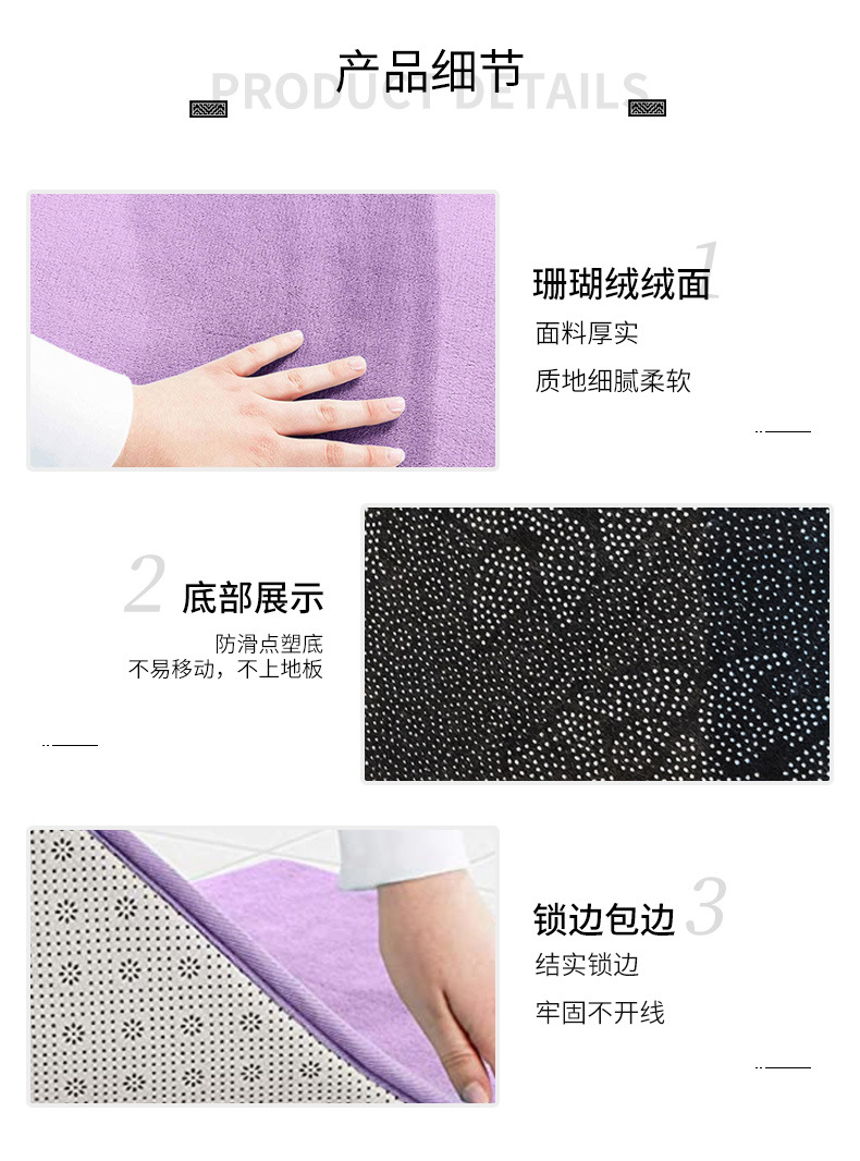 크로스보더 아마존 카펫 단색 코랄벨벳 도어매트 평면 엠보싱 메모리폼 흡수성 발매트